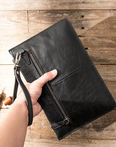 Style: Black Cool Leather Mens 8 inches Long Zipper Clutch Wallet Long Wallet Envelope Bag for Men