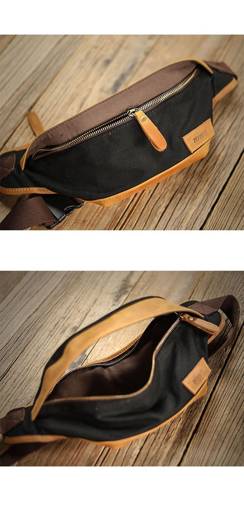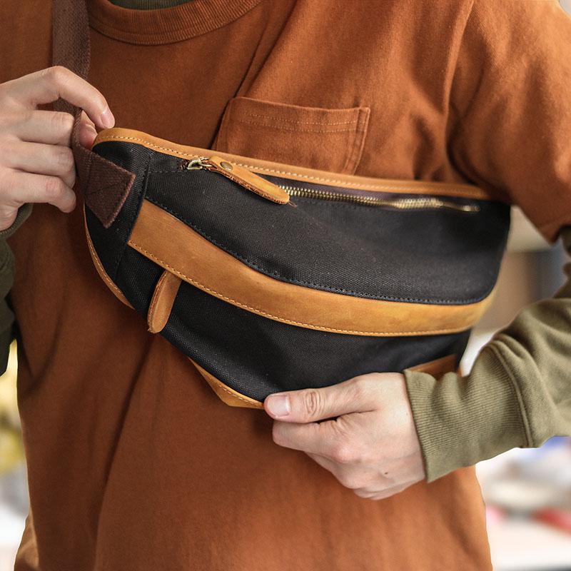 Design: Black Cool Leather Mens Chest Bag Green Waist Bag Fanny Pack Hip Bag Bum Pack For Men