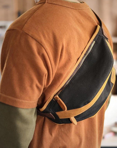 Style: Black Cool Leather Mens Chest Bag Green Waist Bag Fanny Pack Hip Bag Bum Pack For Men
