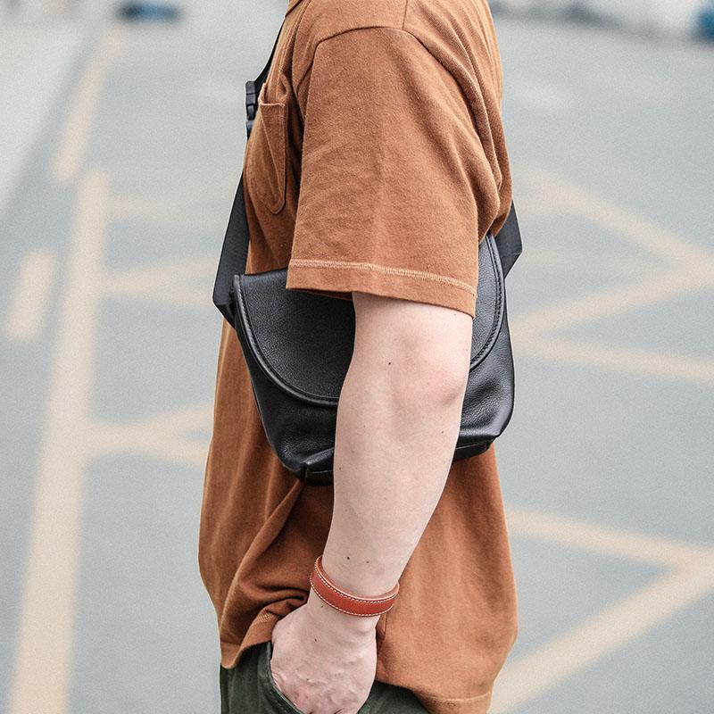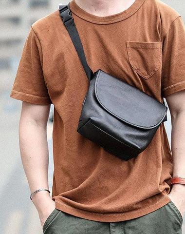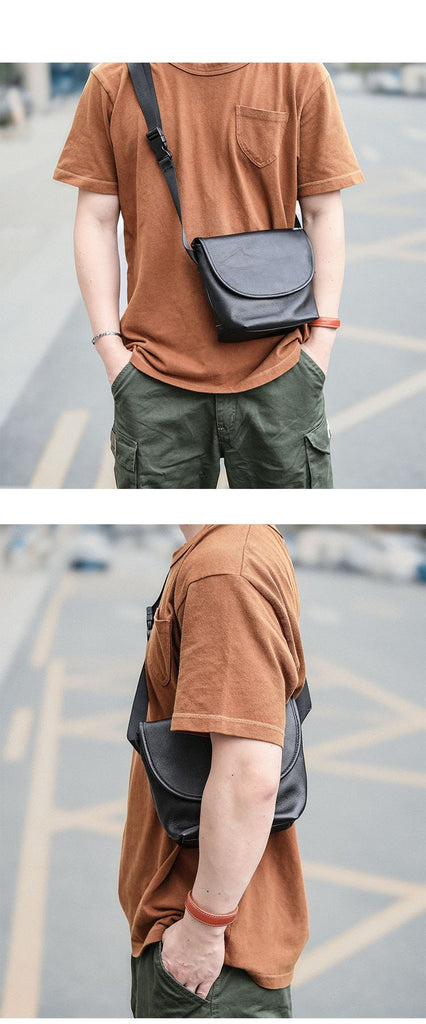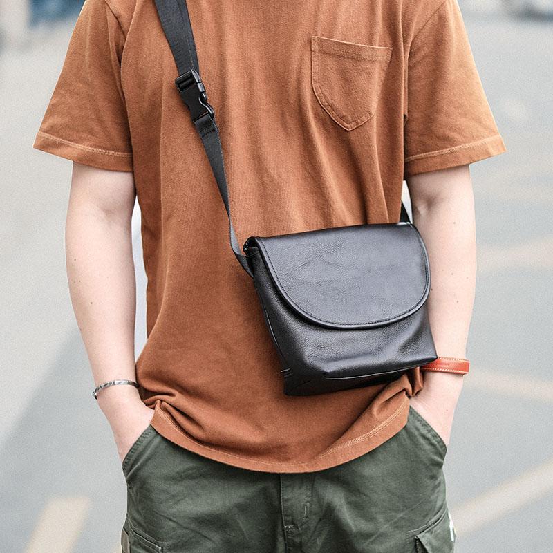 Style: Black Cool Leather Mens Small Shoulder Bag Messenger Bag Crossbody Bag For Men