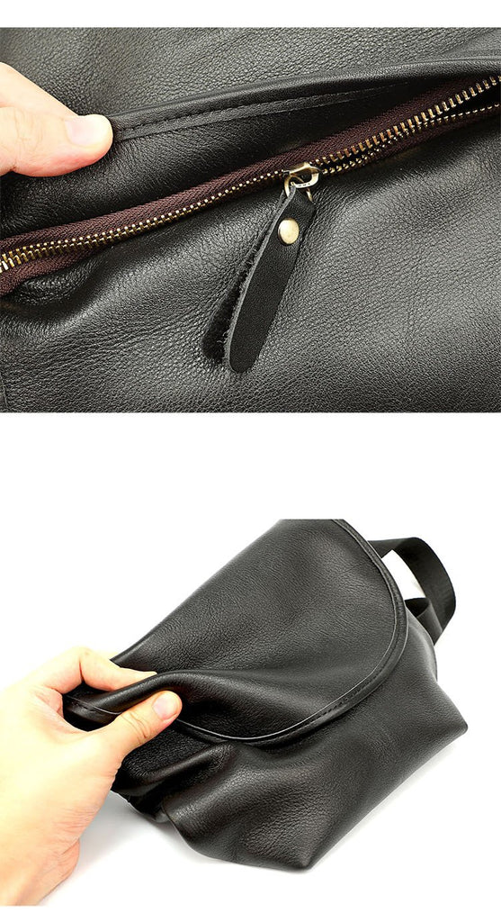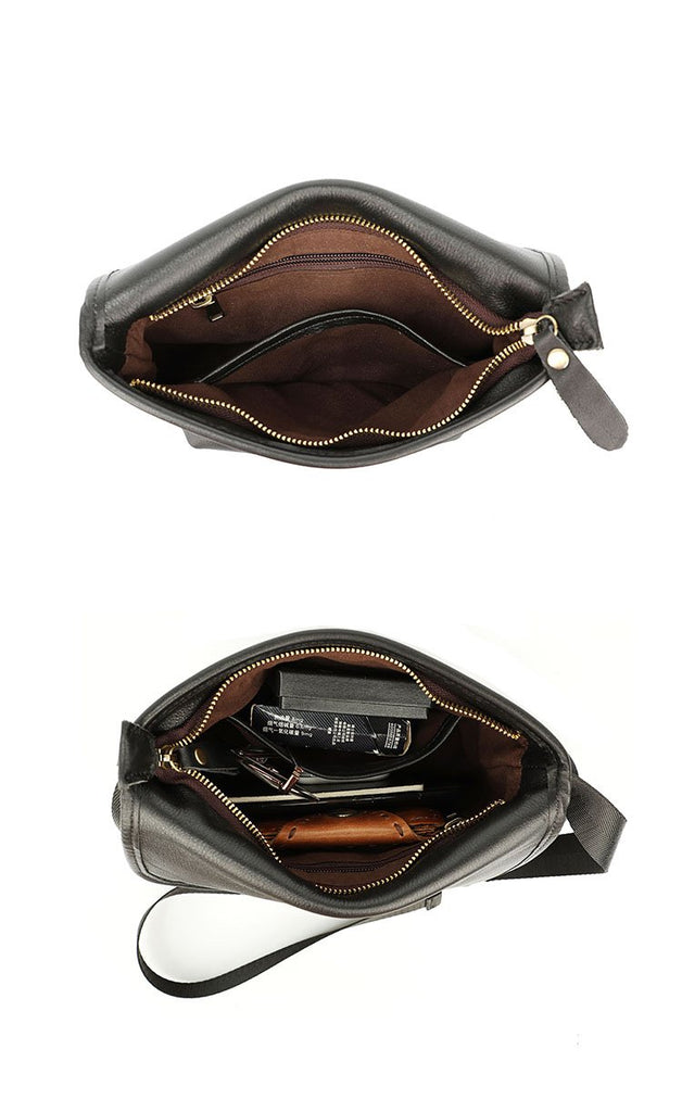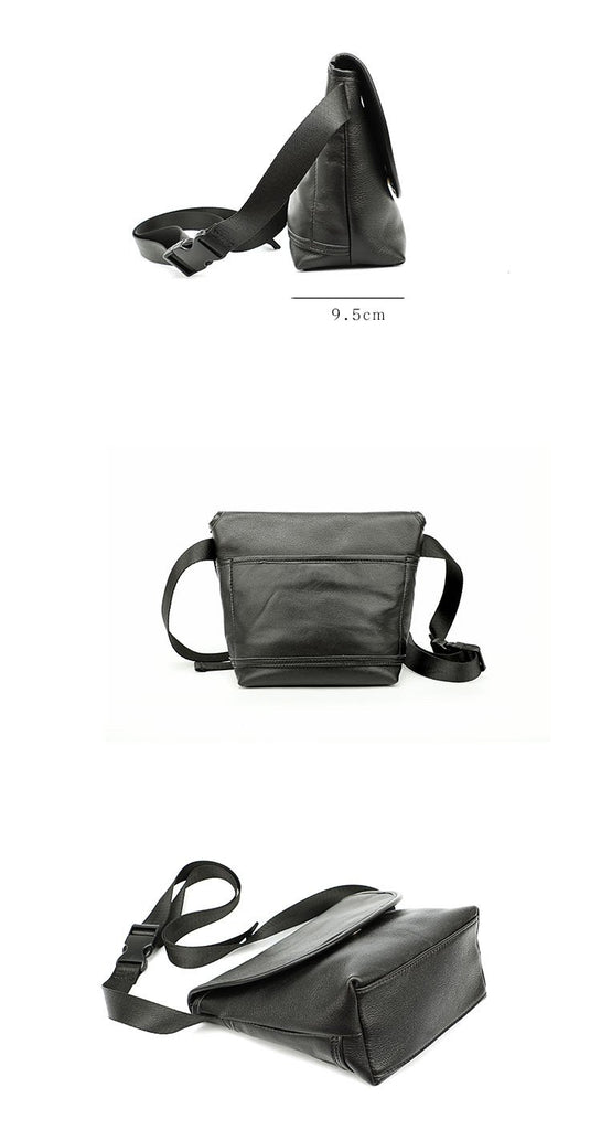 Design: Black Cool Leather Mens Small Shoulder Bag Messenger Bag Crossbody Bag For Men