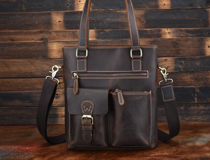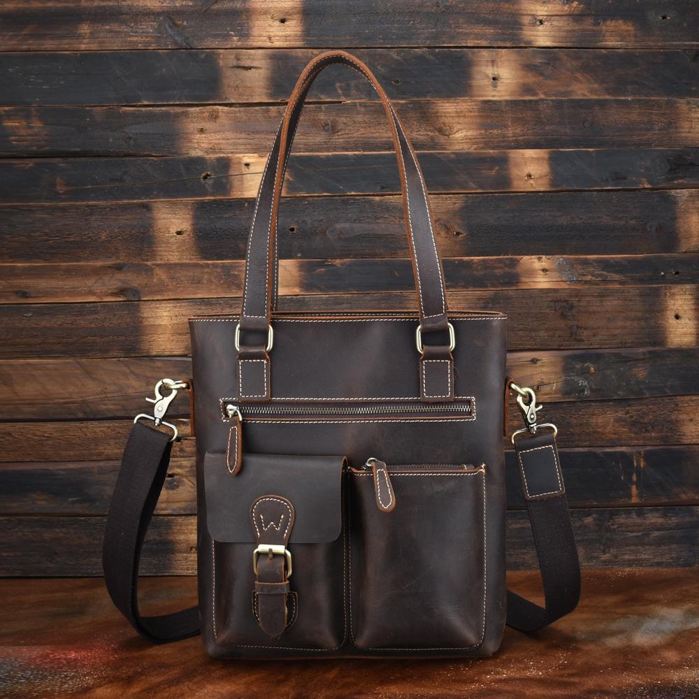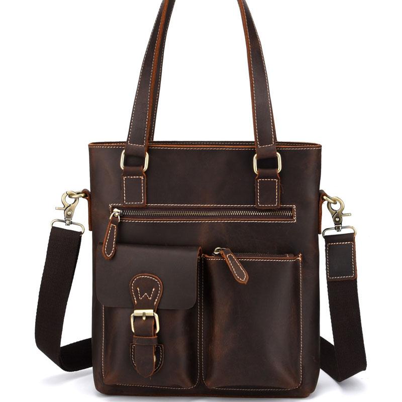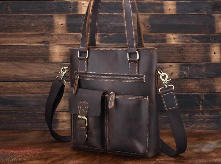 Design: Cool Black Coffee Leather Tote Work Bag Handbag Briefcase Shoulder Bag For Men
