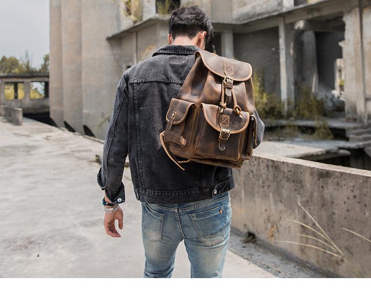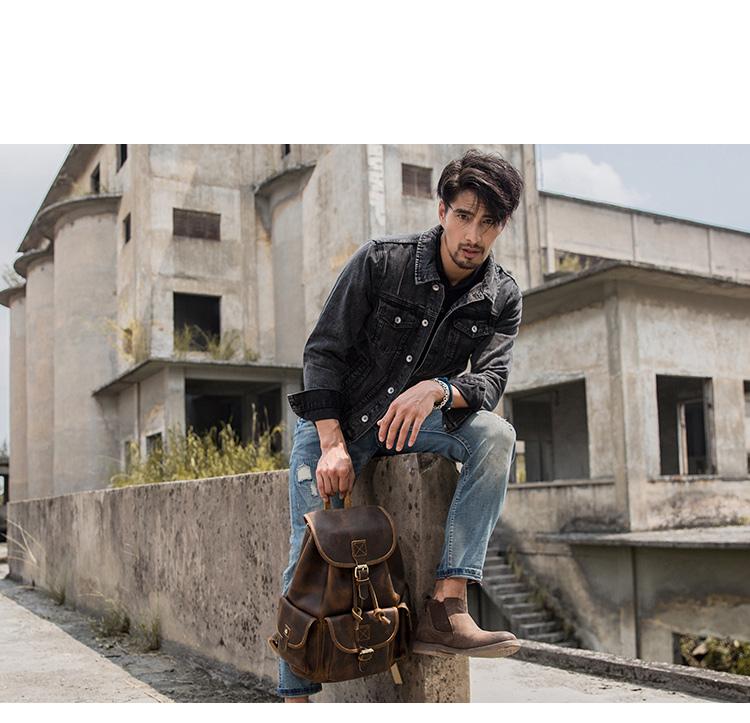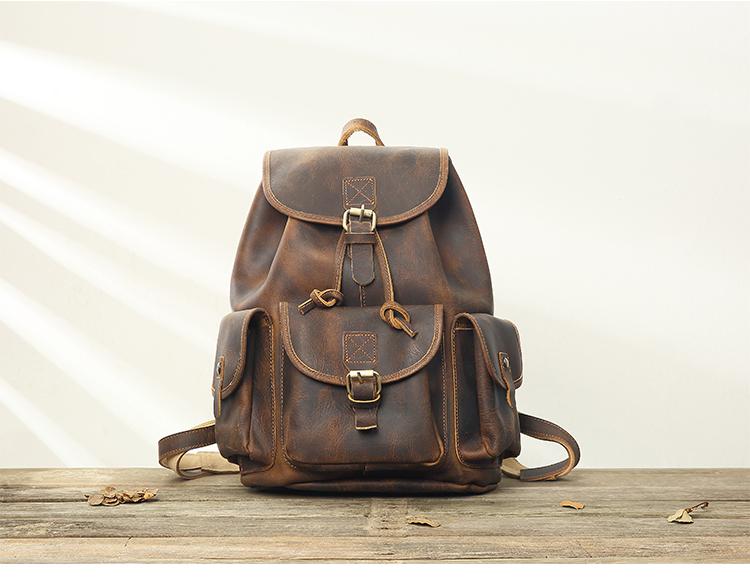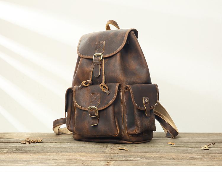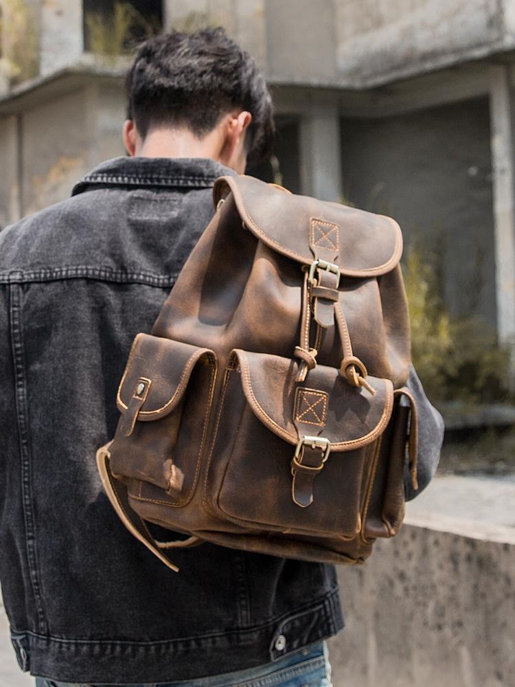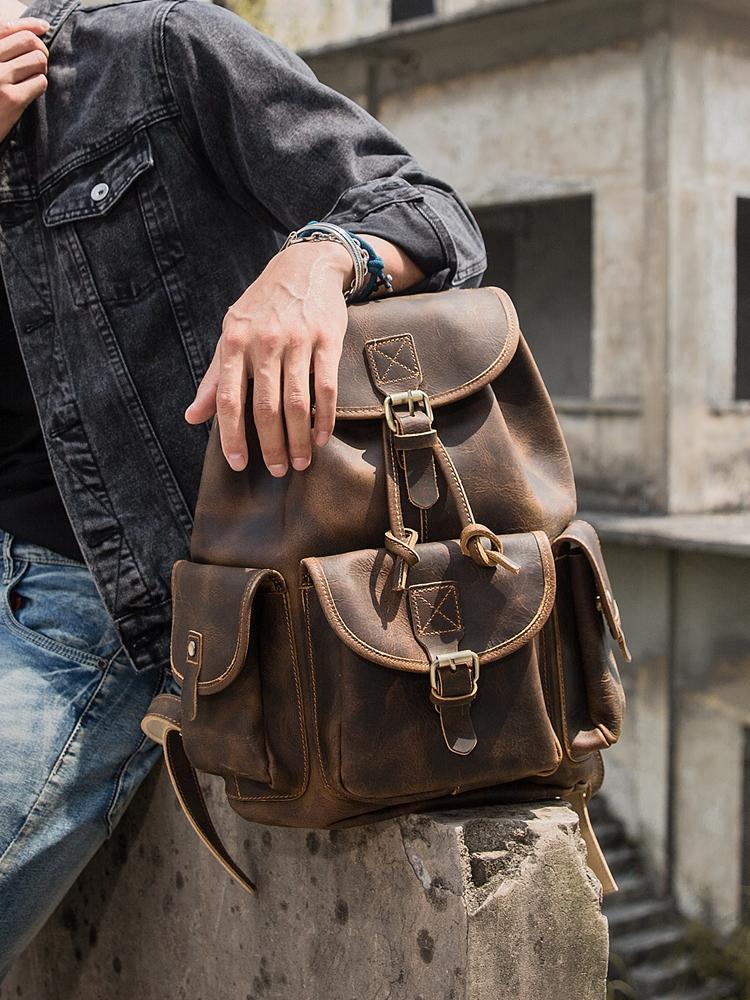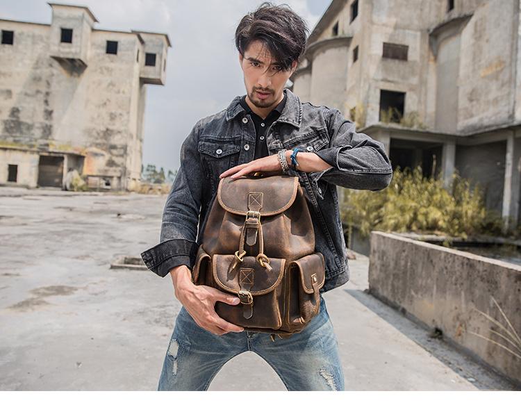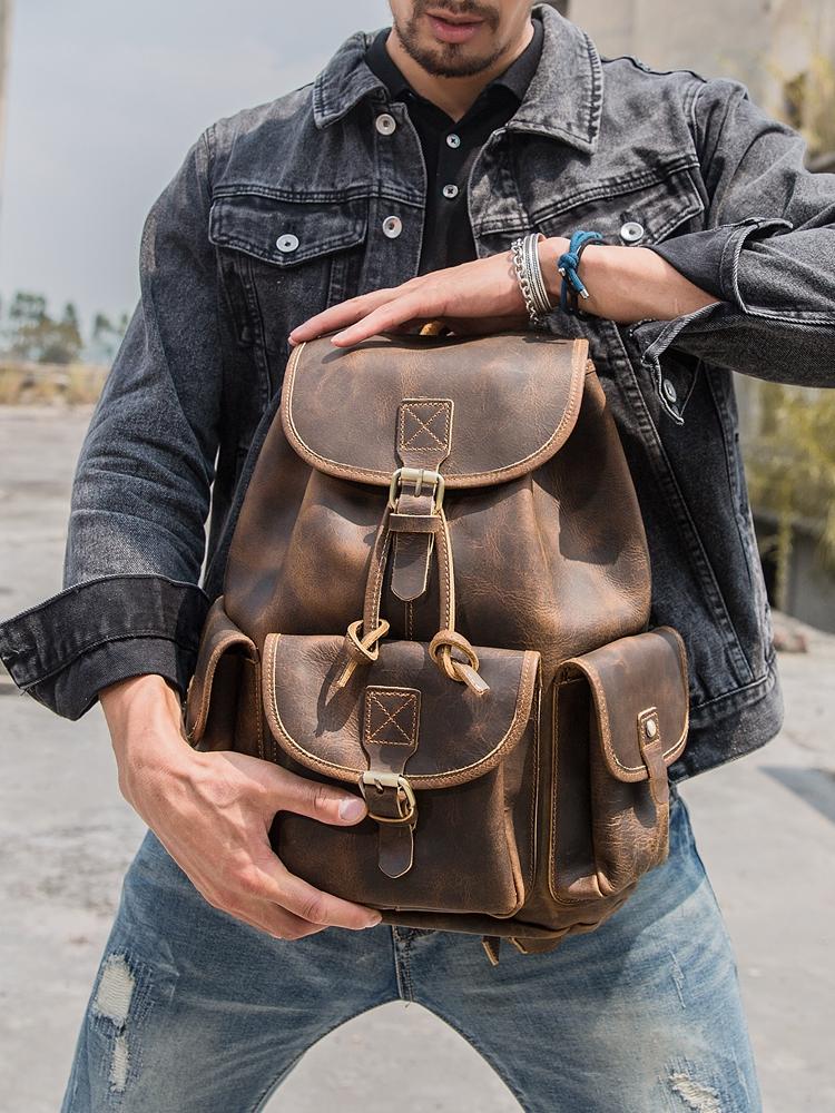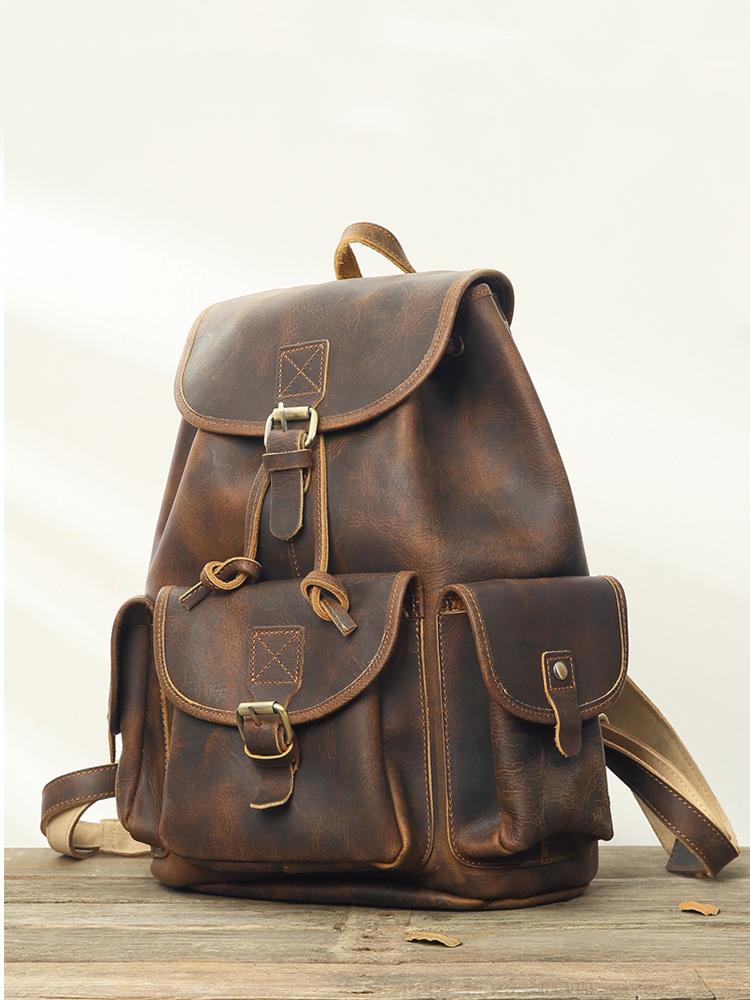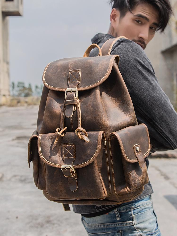 Style: Dark Brown Cool Mens 13 inches Leather Backpacks Travel Backpacks Laptop Backpack for men