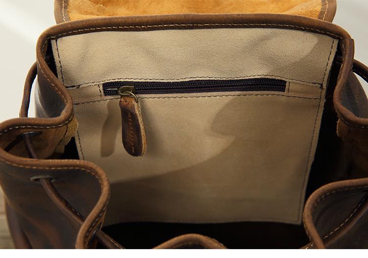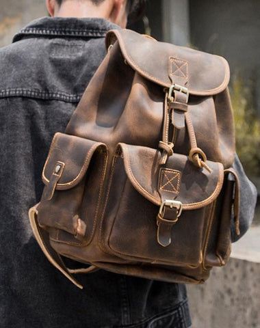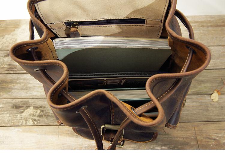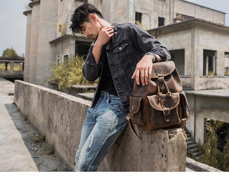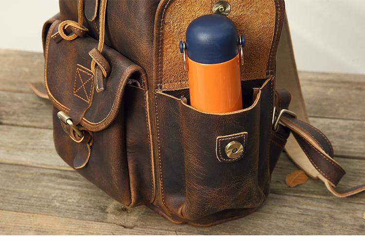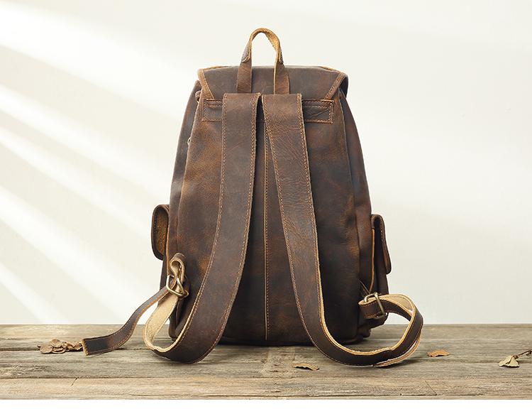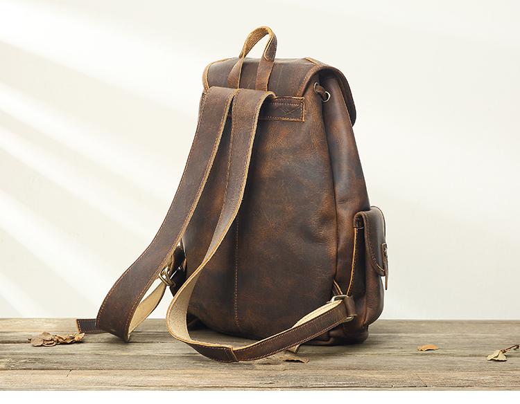 Design: Dark Brown Cool Mens 13 inches Leather Backpacks Travel Backpacks Laptop Backpack for men