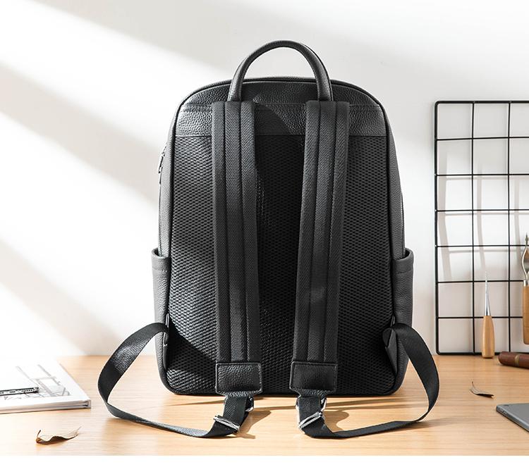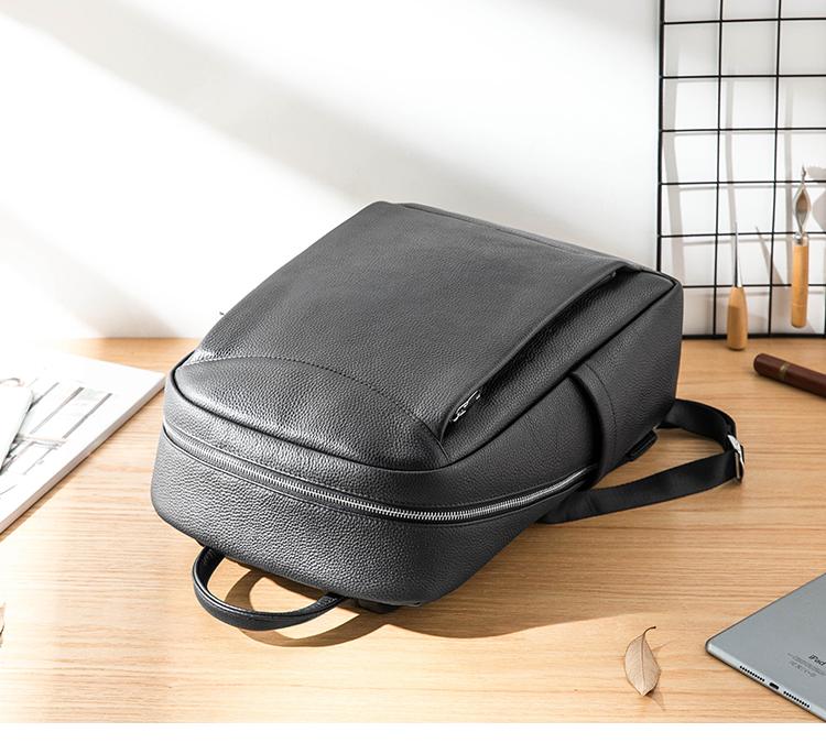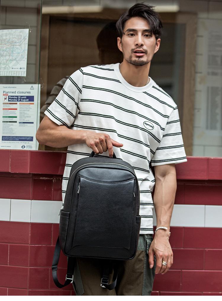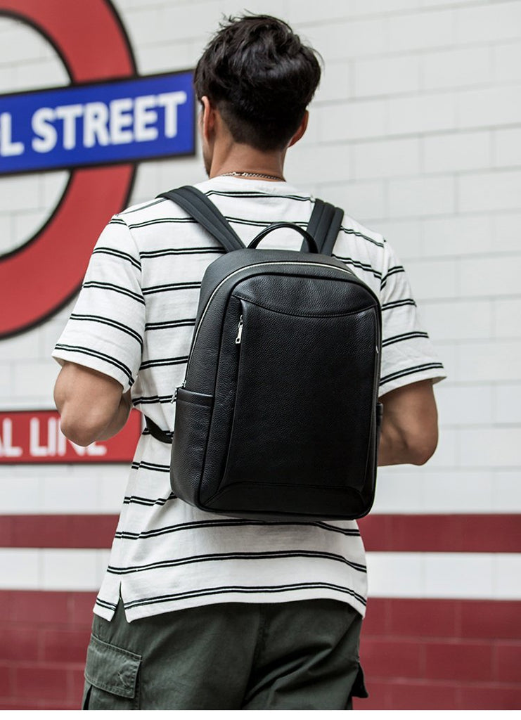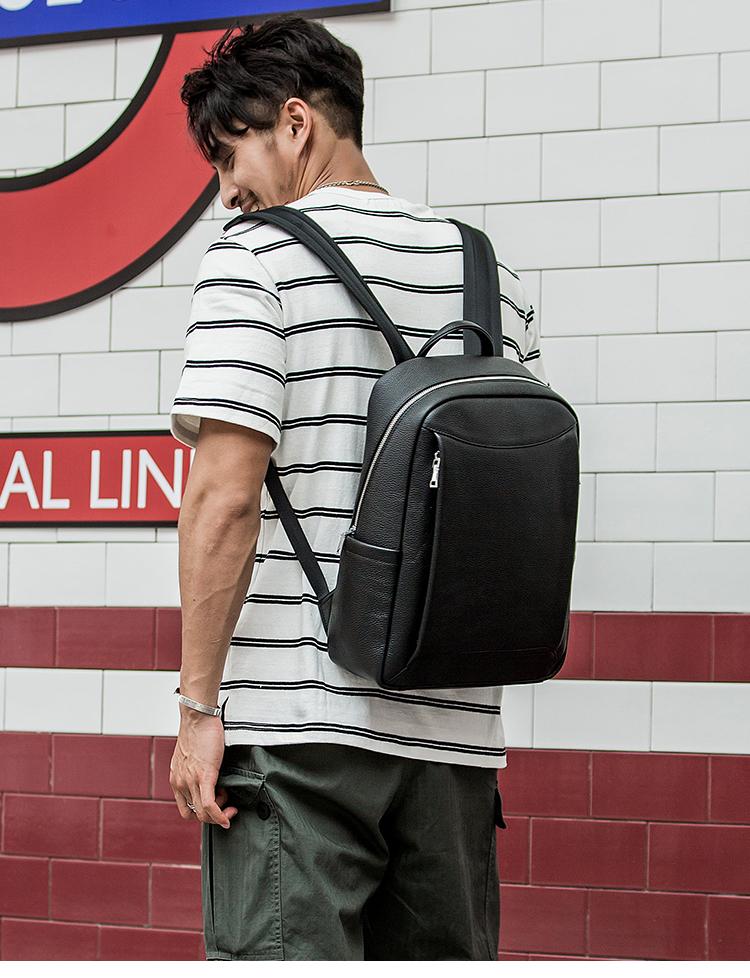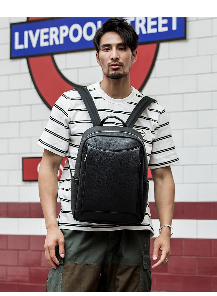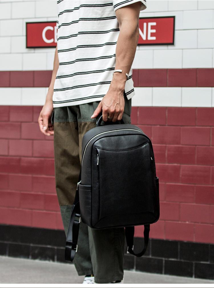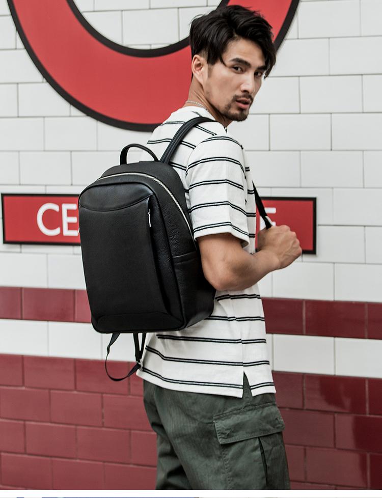 Design: Black Cool Mens Leather 14-inch Simple Backpacks Travel Backpacks Laptop Backpack for men