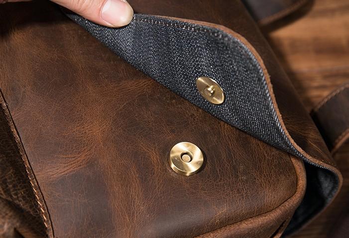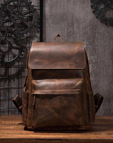 Design: Black Cool Mens Leather Backpack Travel Backpack Leather 15inch Laptop Backpack for Men