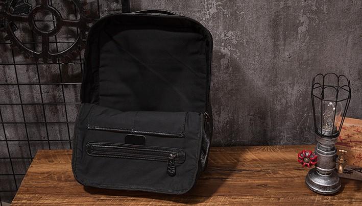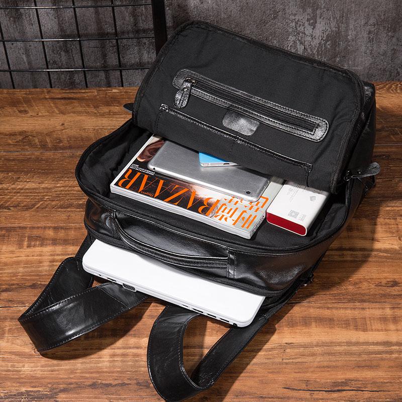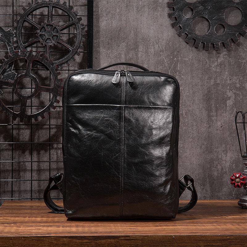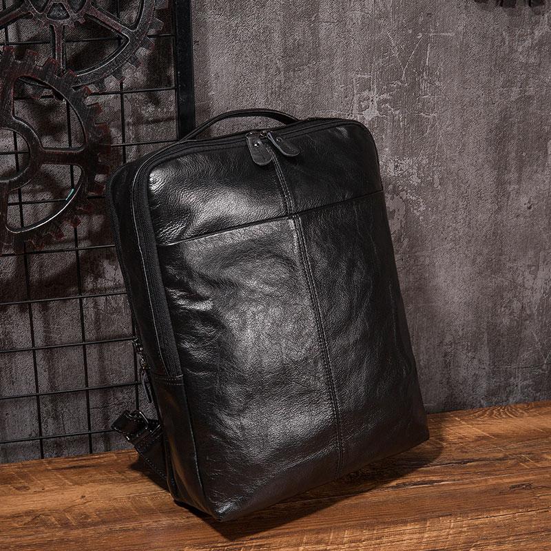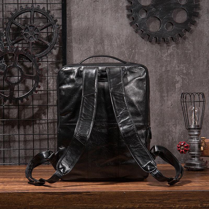 Design: Black Cool Mens Leather Backpack Travel Backpack Leather 15inch Laptop Backpack for Men