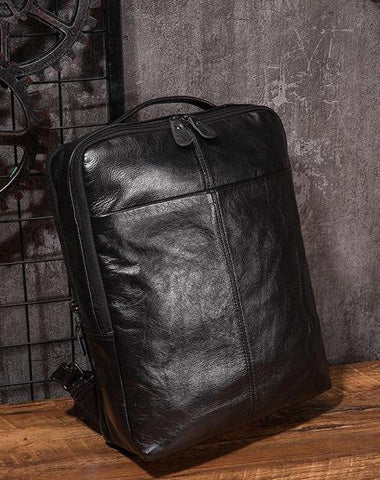 Style: Black Cool Mens Leather Backpack Travel Backpack Leather 15inch Laptop Backpack for Men