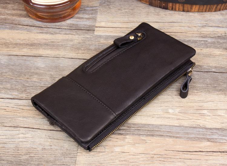Design: Black Cool Mens Leather long Wallet Khaki Leather Zipper Wallet Long Wallets Clutch for Men