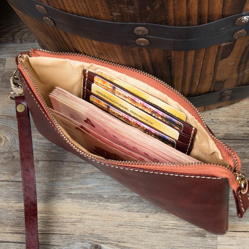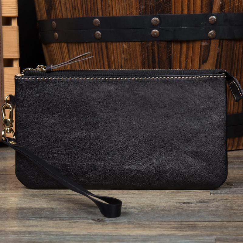 Style: Black Cool Mens long Wallet Wristlet Bag Clutch Bag Red Brown Long Wallets for Men