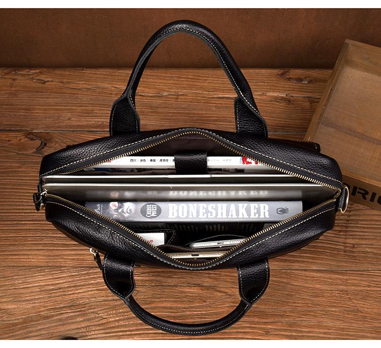Design: Black Dark Brown Leather Mens 13 inches Briefcase Laptop Bag Business Bag Work Bag for Men