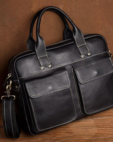 Style: Black Dark Brown Leather Mens 13 inches Briefcase Laptop Bag Business Bag Work Bag for Men