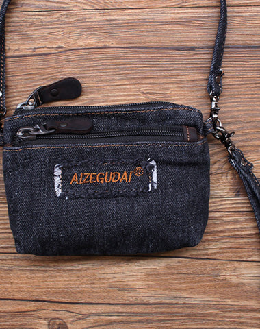 Style: Denim Womens Mini Shoulder Bags Keys Coin Wallet Crossbody Bag Denim Wirstlet Purse