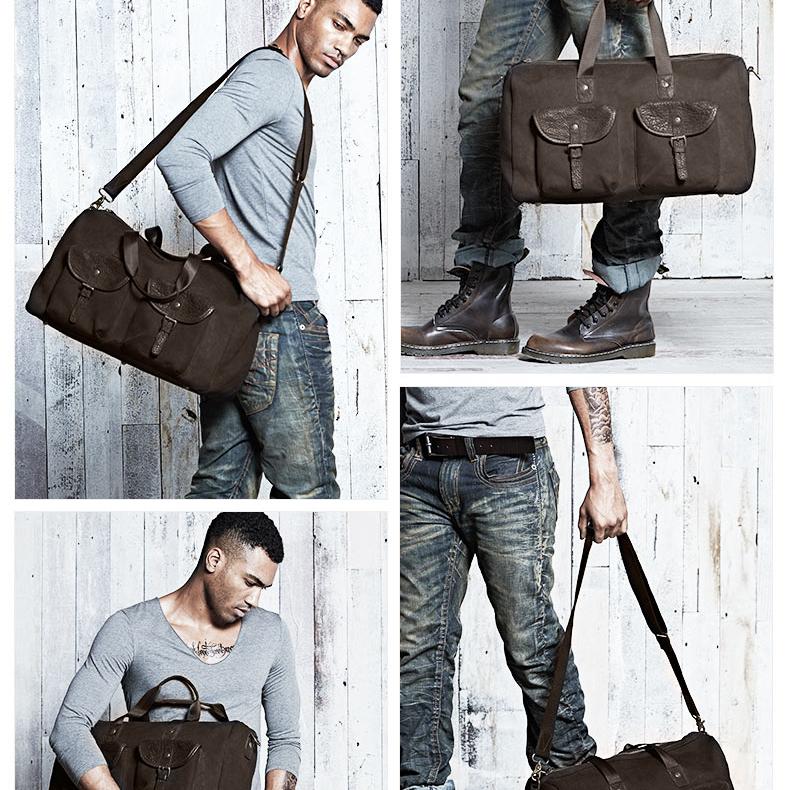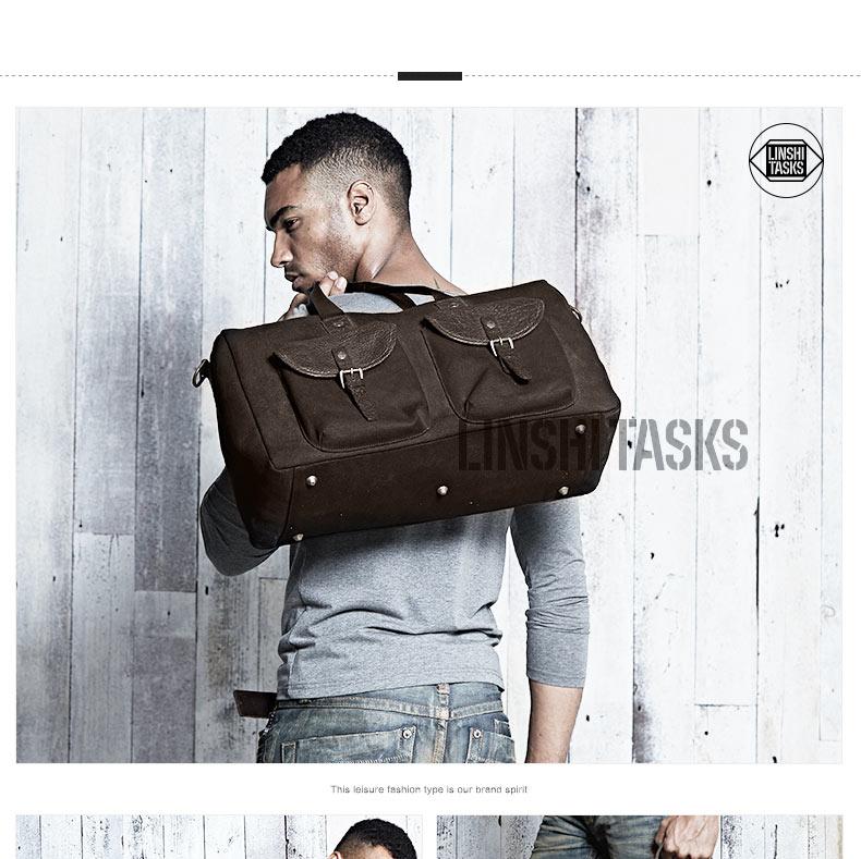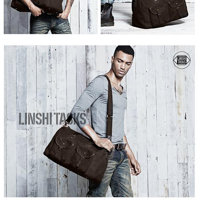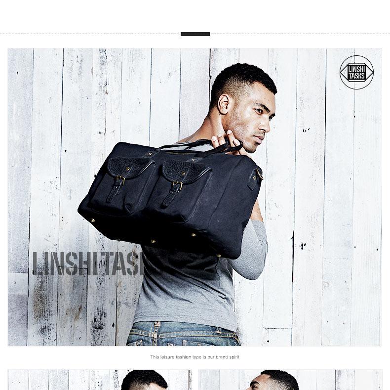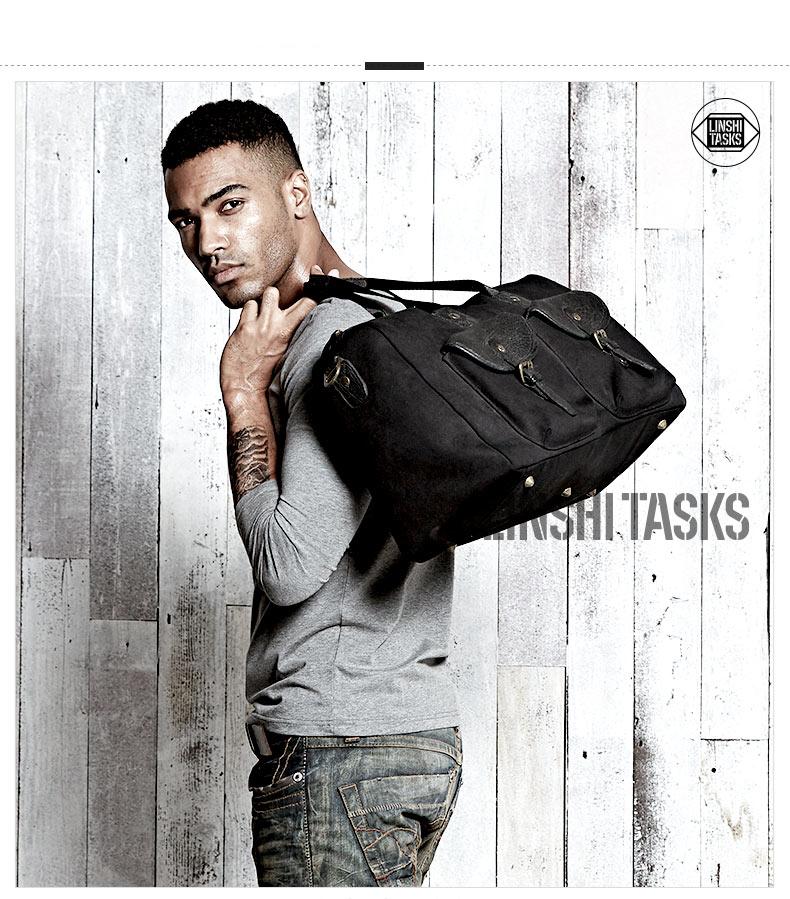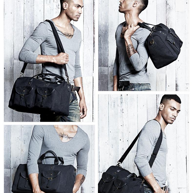 Design: Black Fashion Canvas Mens Casual Large Travel Bag Shoulder Weekender Bag Duffle Bag For Men