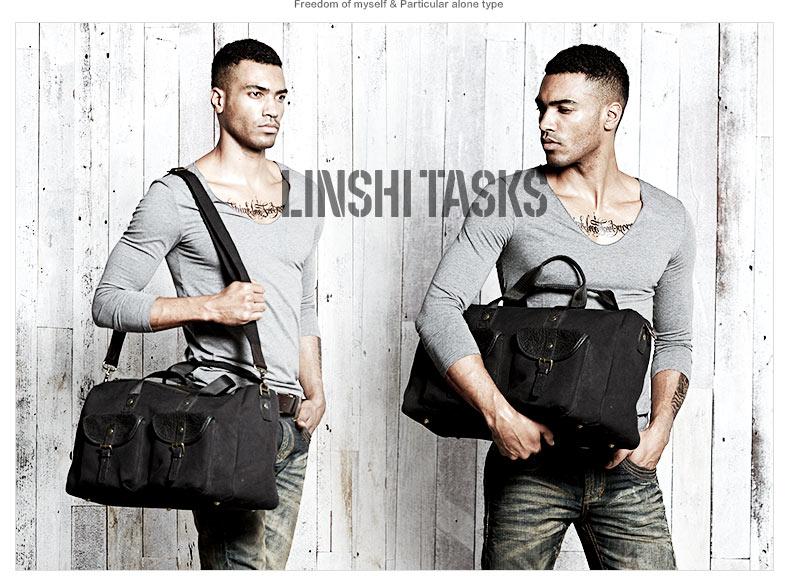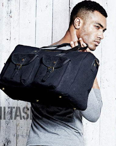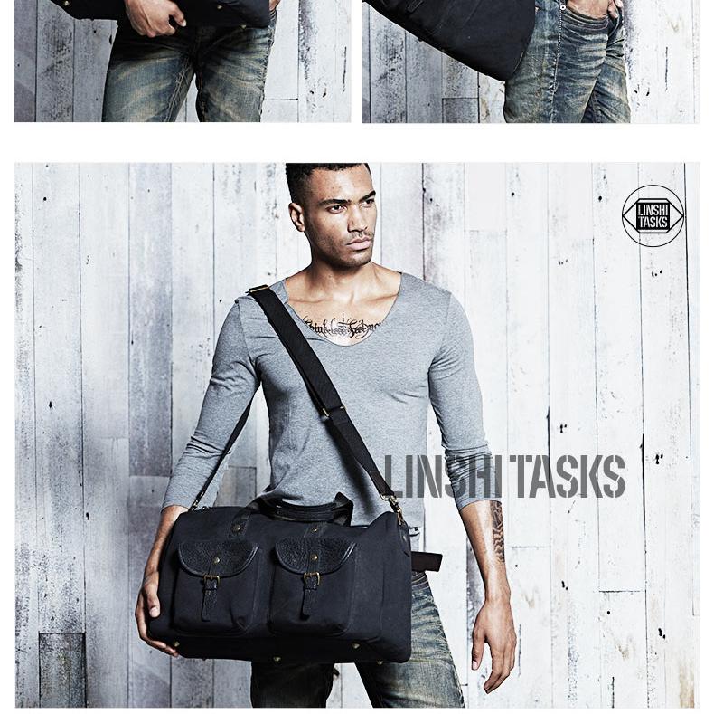 Style: Black Fashion Canvas Mens Casual Large Travel Bag Shoulder Weekender Bag Duffle Bag For Men