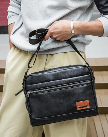 Design: Black Fashion Leather Mens 10 inches Shoulder Bag Black Messenger Bags Side Bag for Men