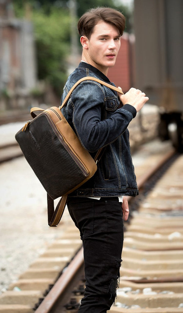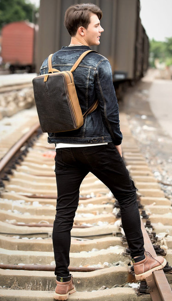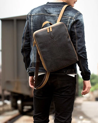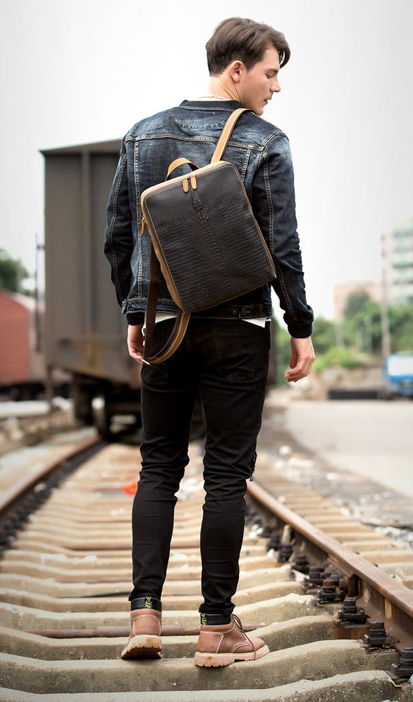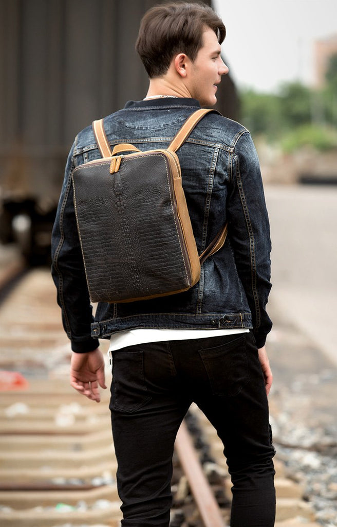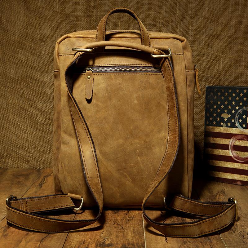 Design: Black Fashion Mens Leather 13-inch Computer Backpack Brown Satchel Backpacks School Backpacks for men