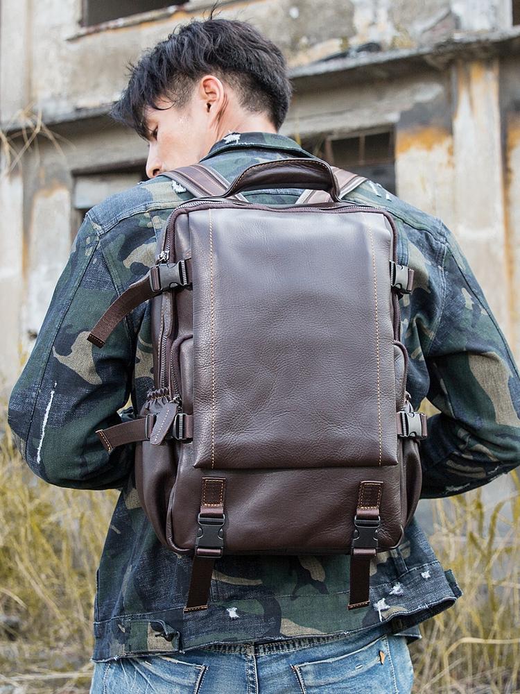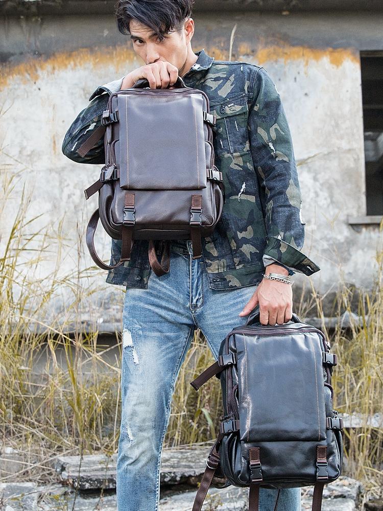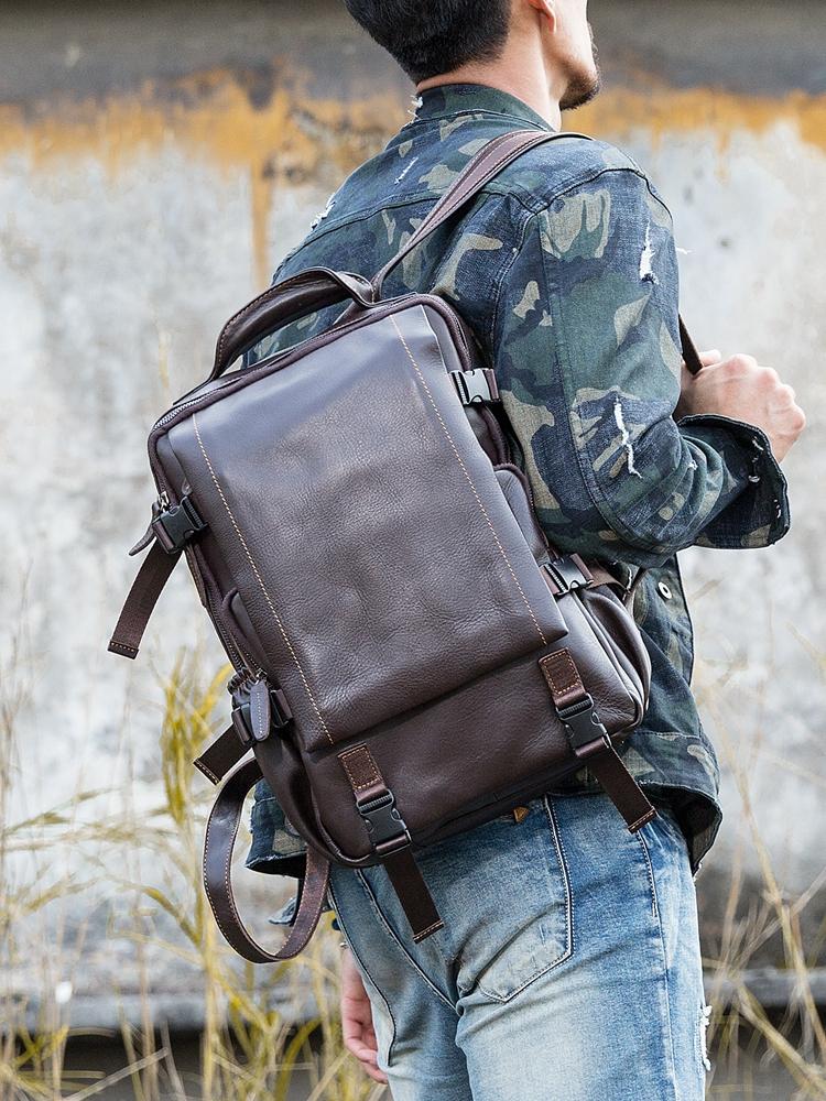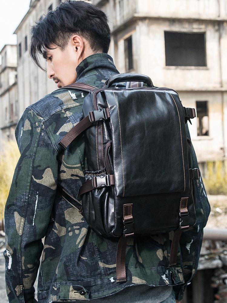 Style: Black Fashion Mens Leather 13-inch Computer Backpacks Travel Backpacks School Backpacks for men