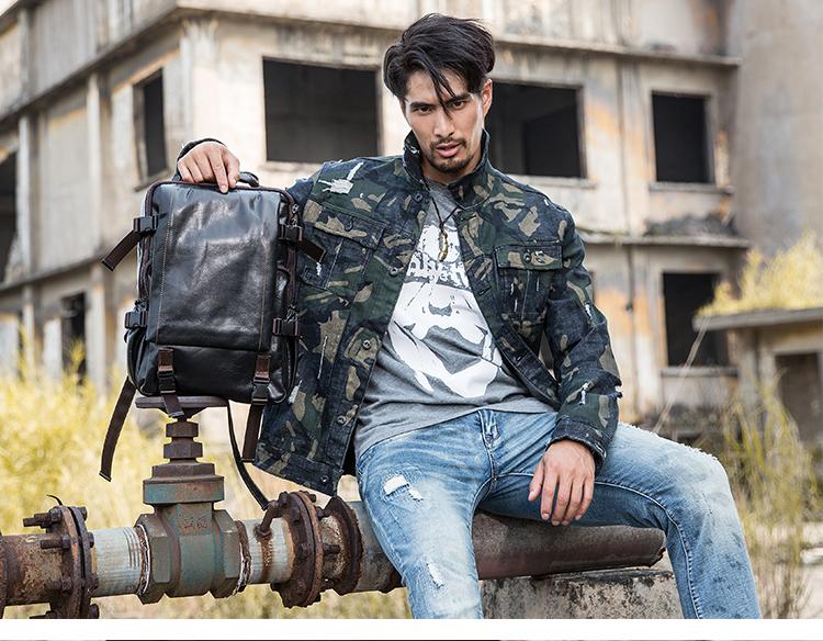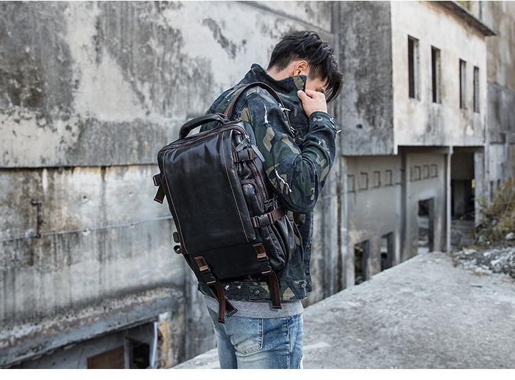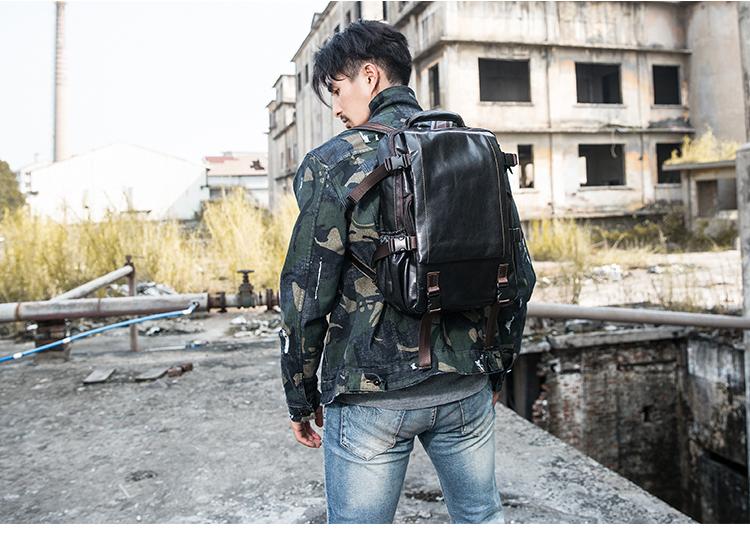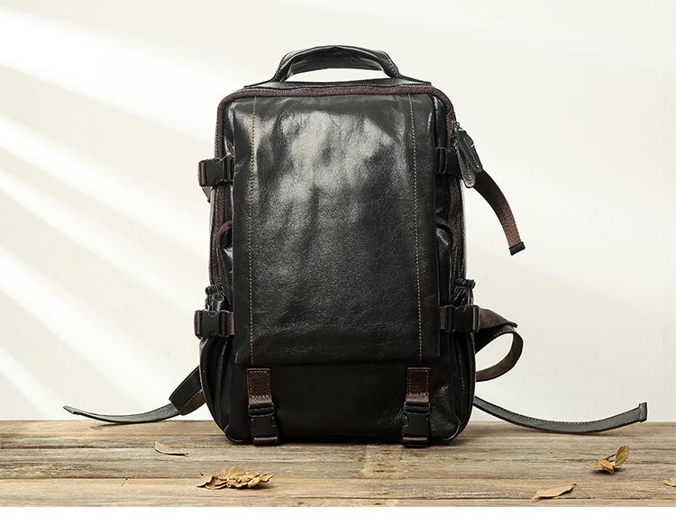Design: Black Fashion Mens Leather 13-inch Computer Backpacks Travel Backpacks School Backpacks for men