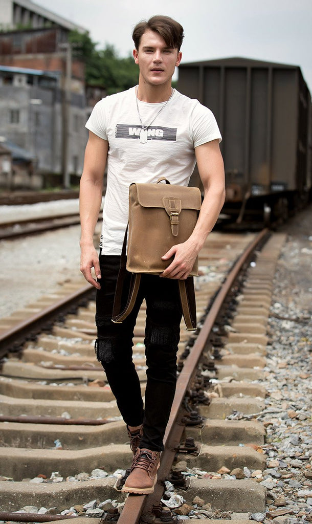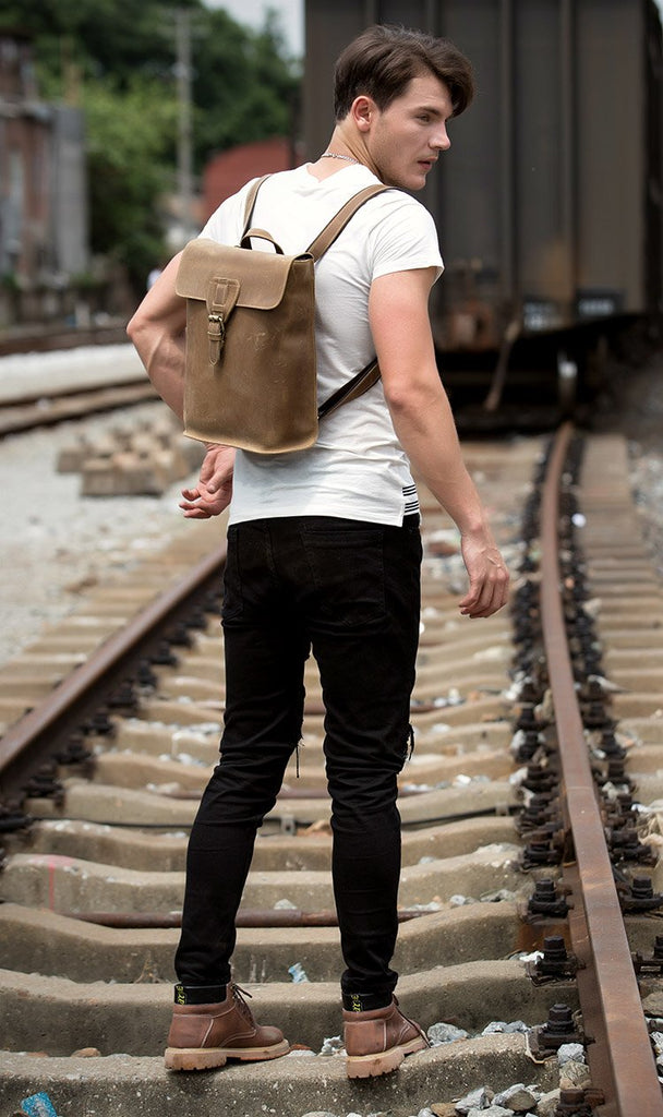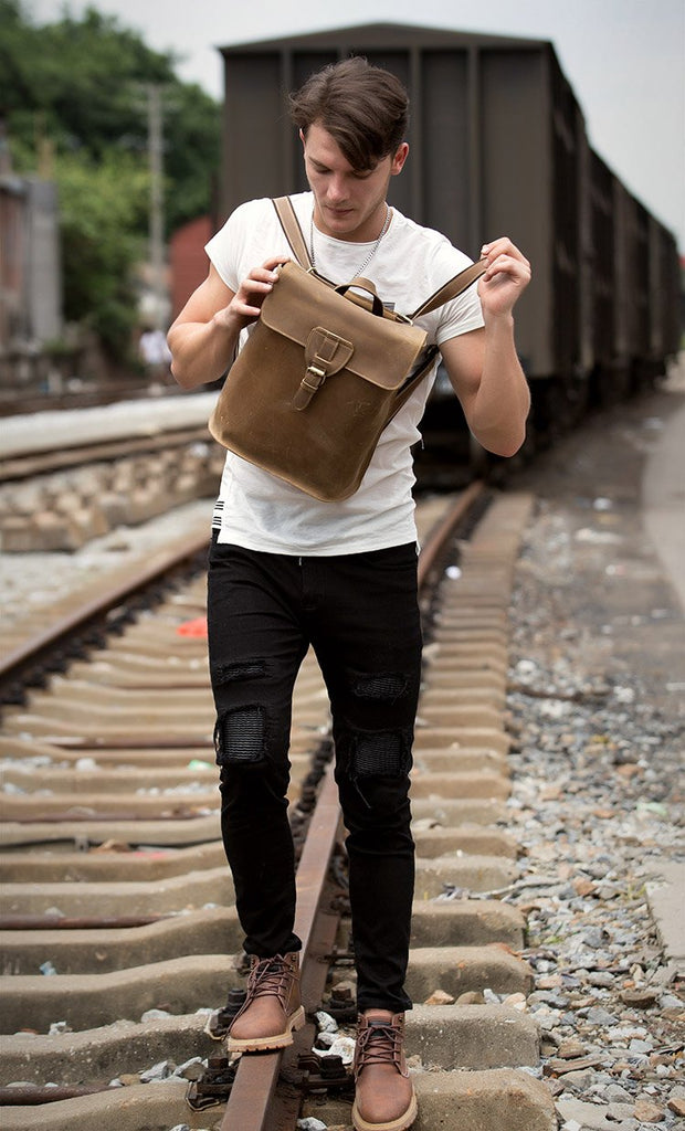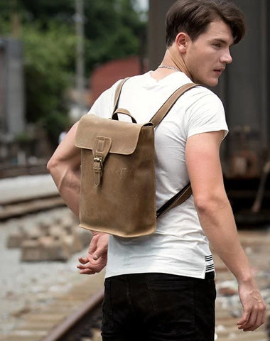 Design: Black Fashion Mens Leather 14-inch Computer Backpack Brown Satchel Backpacks School Backpacks for men