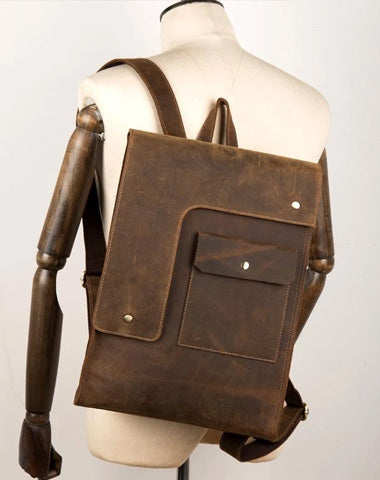 Design: Black Fashion Mens Leather 14-inch Computer Backpack Dark Brown Travel Backpacks School Backpacks for men