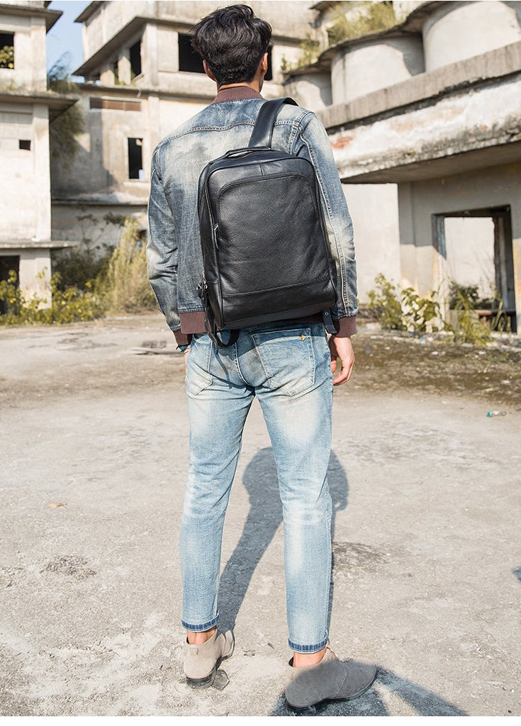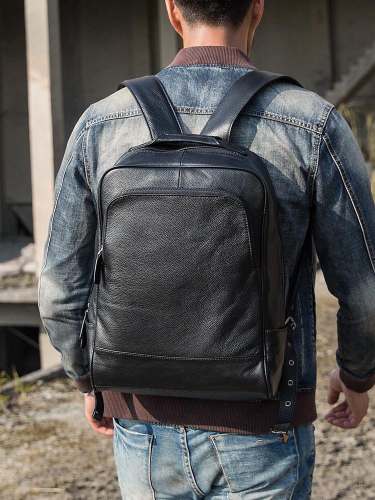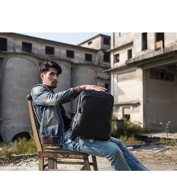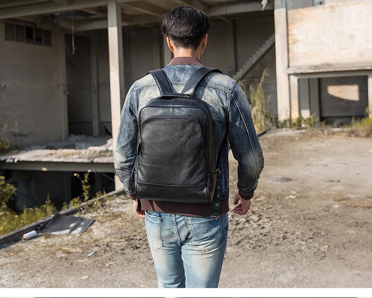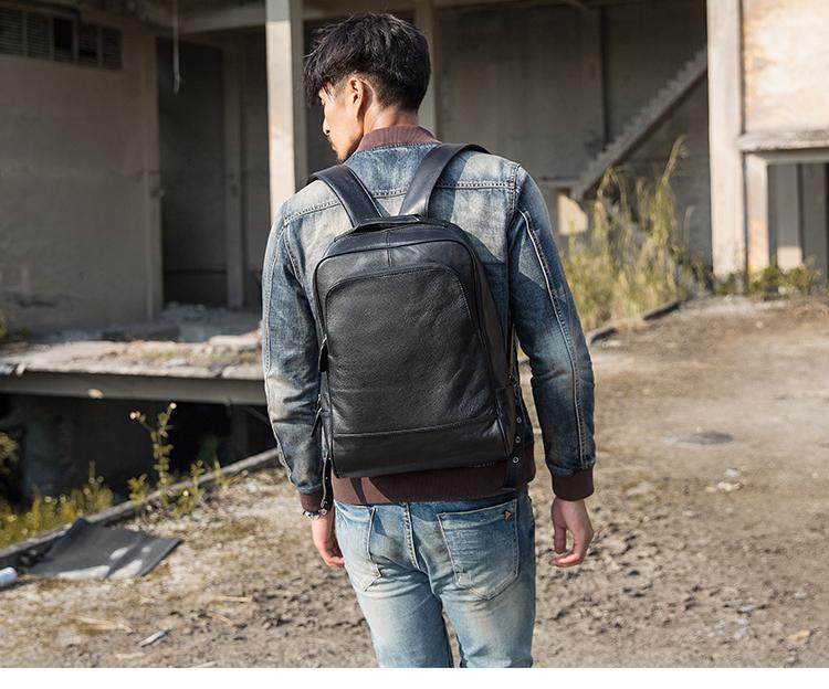 Style: Black Fashion Mens Leather 15-inch Business Computer Backpacks Travel Backpacks Black College Backpack for men