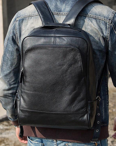 Black Fashion Mens Leather 15-inch Business Computer Backpacks Laptop Backpacks Black College Backpack for men