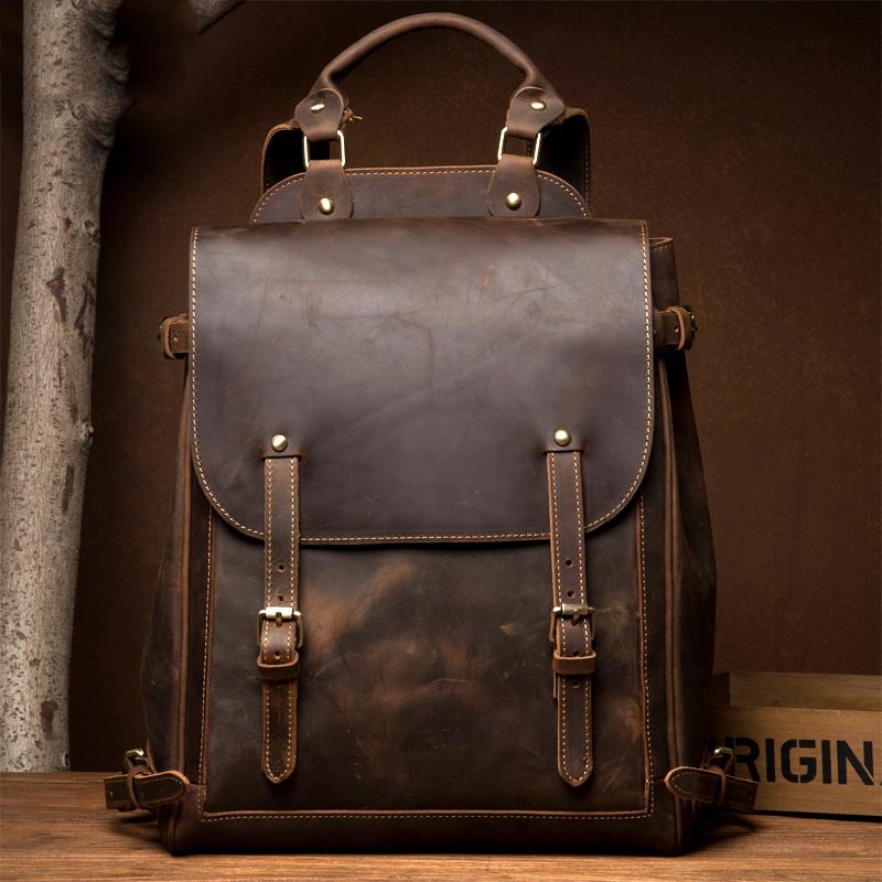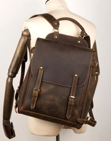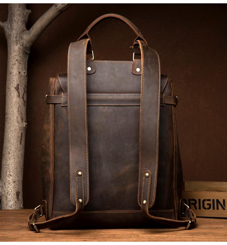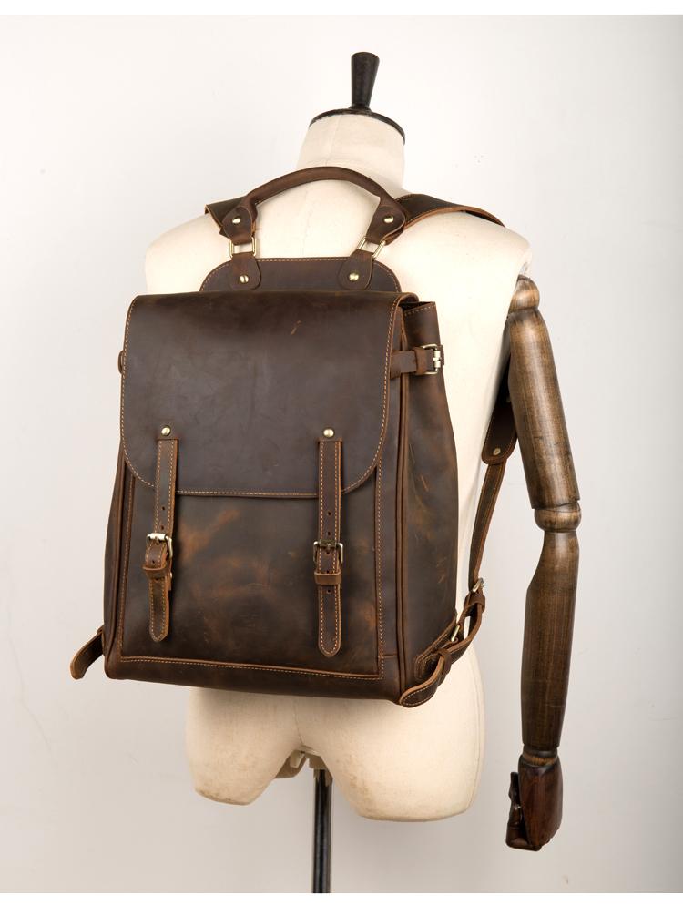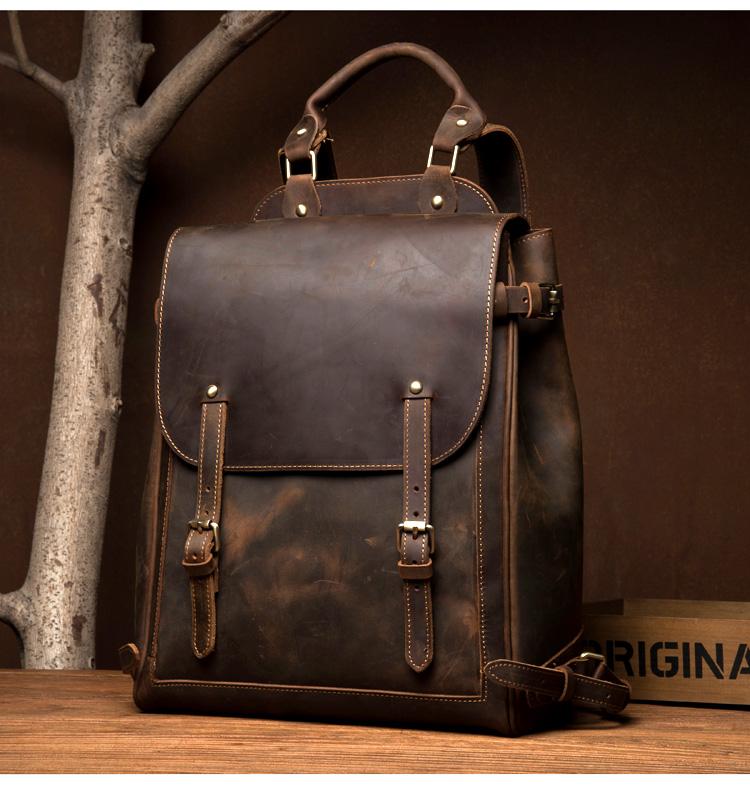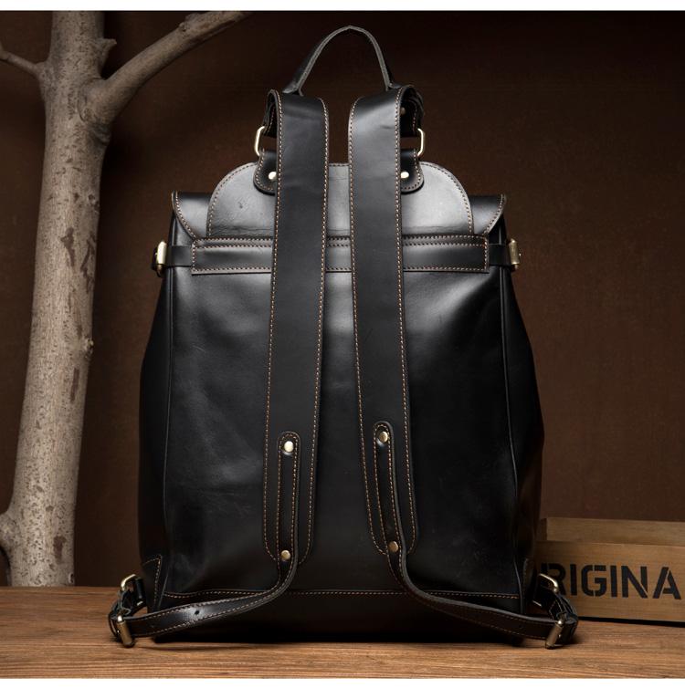 Design: Black Fashion Mens Leather 15-inch Computer Backpack Dark Brown Travel Backpacks School Backpacks for men