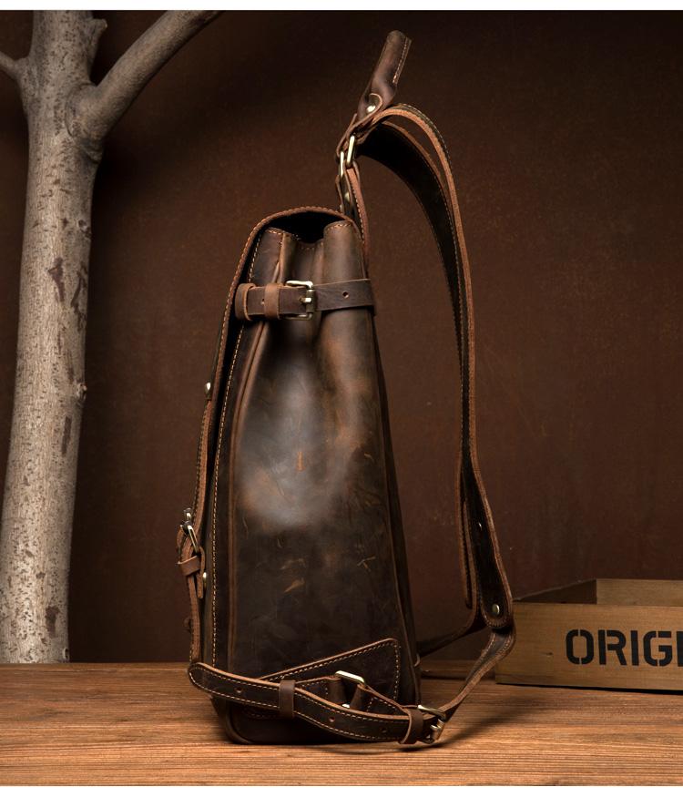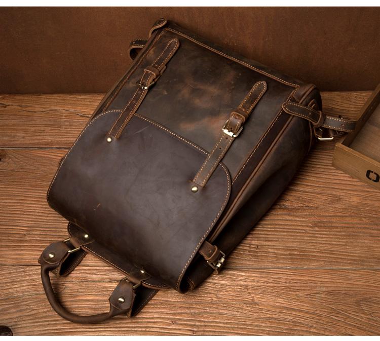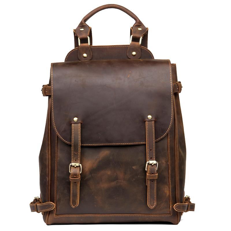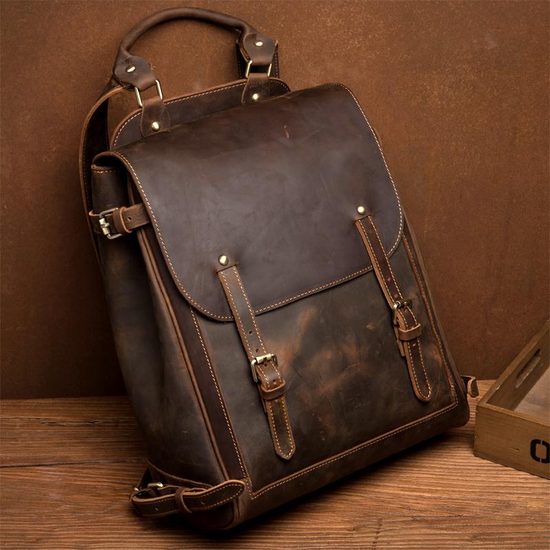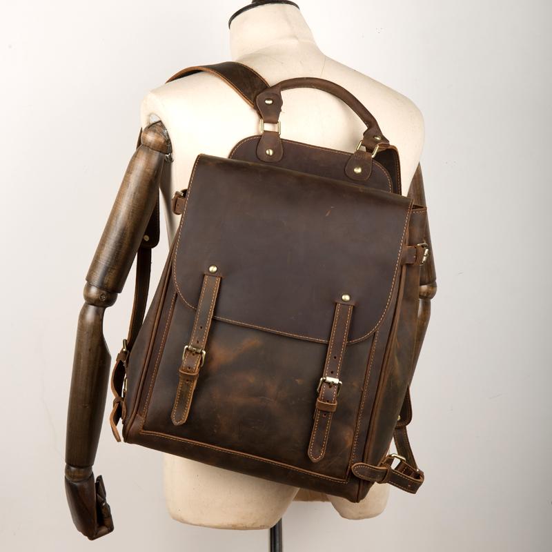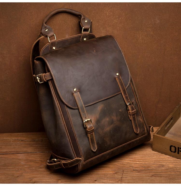 Design: Black Fashion Mens Leather 15-inch Computer Backpack Dark Brown Travel Backpacks School Backpacks for men