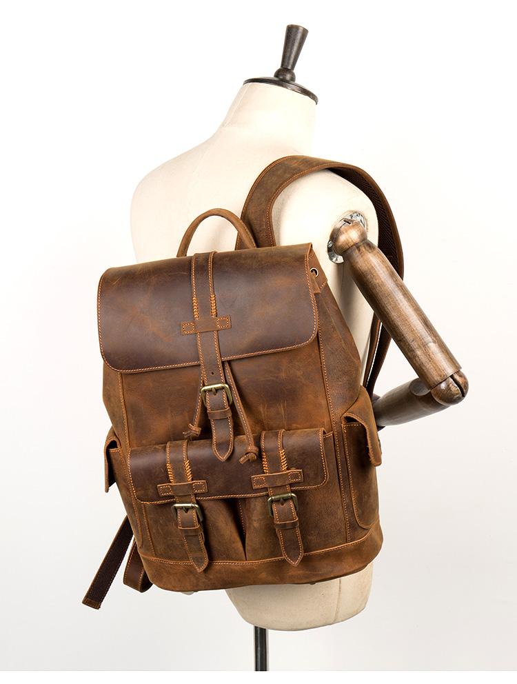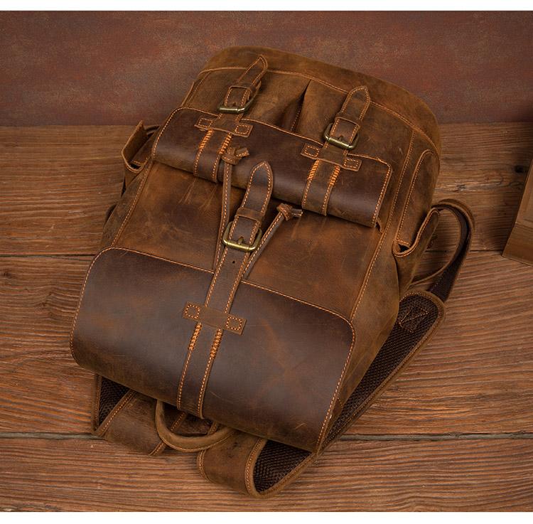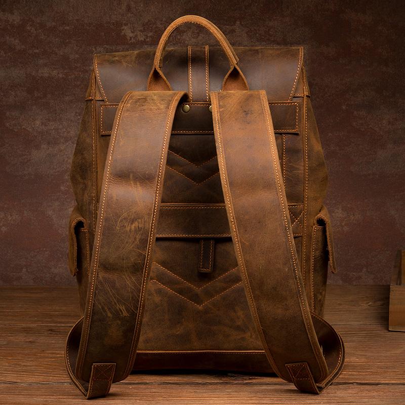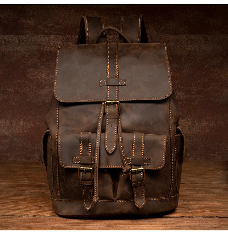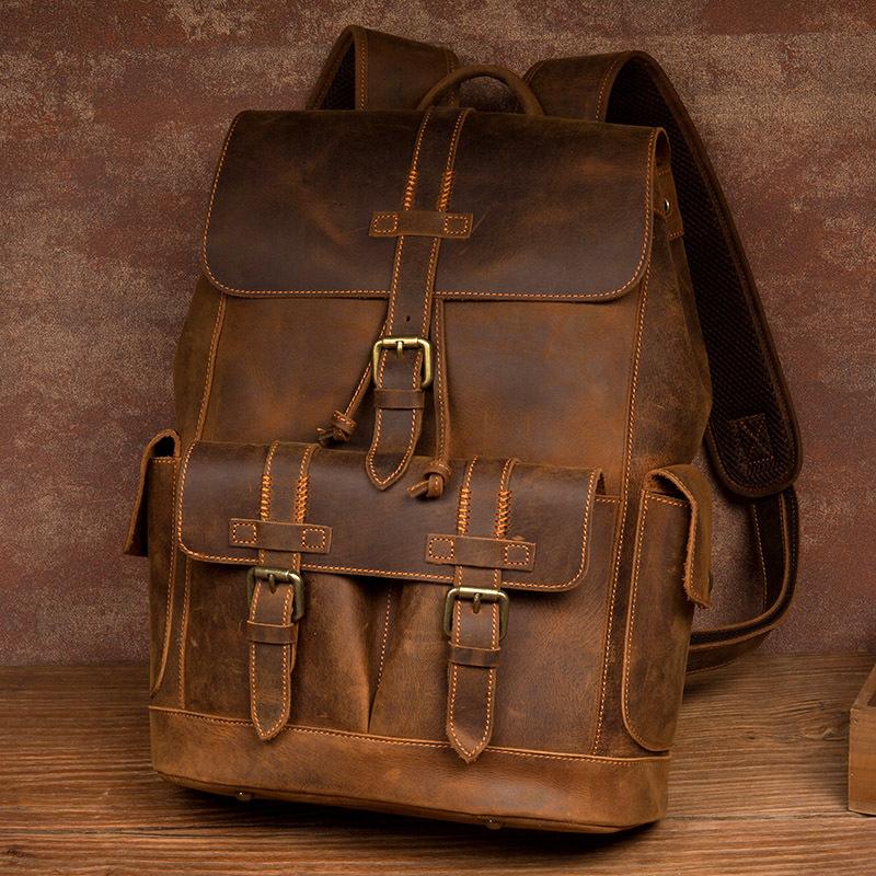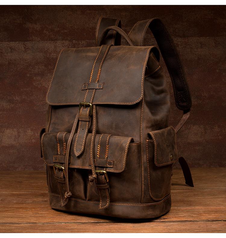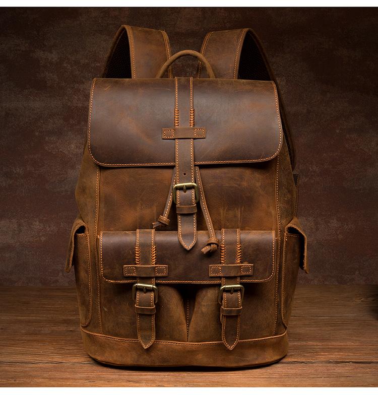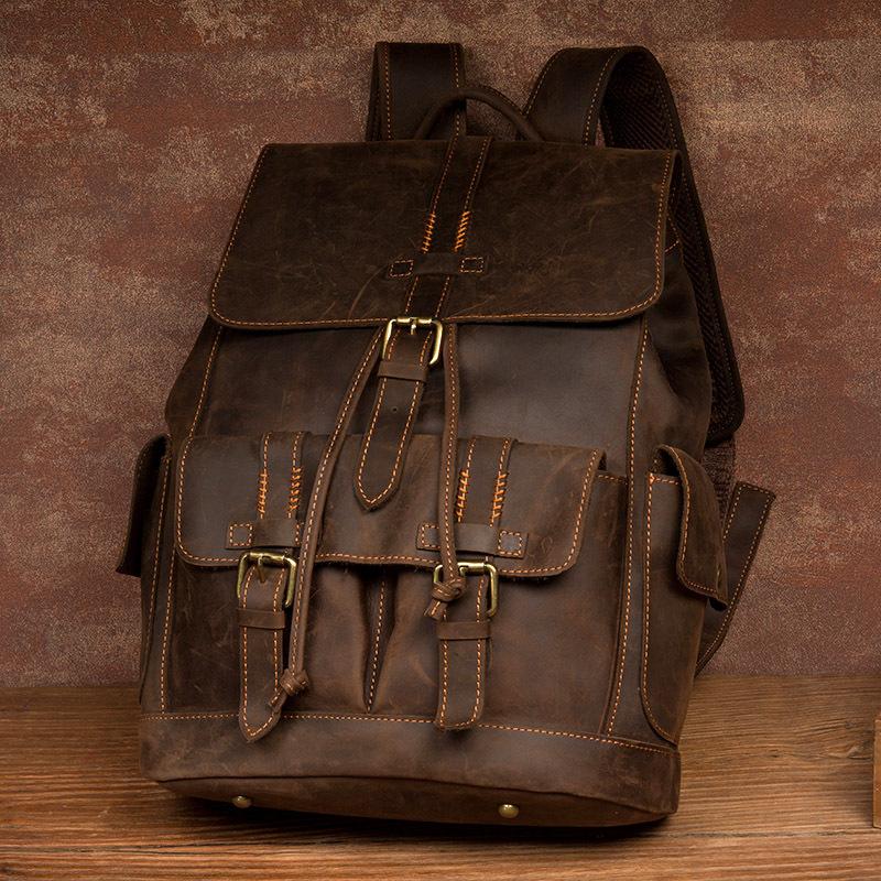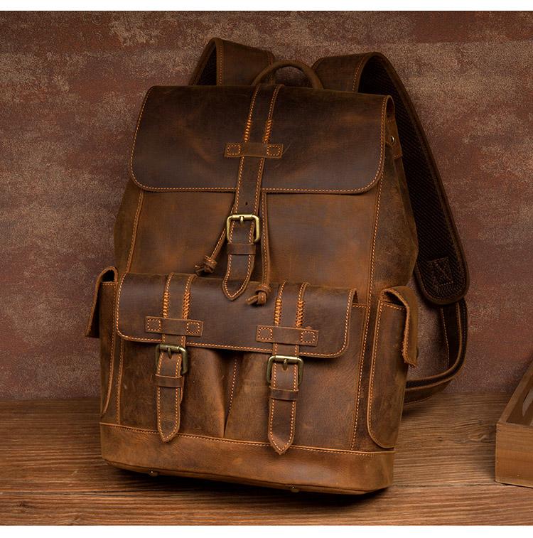 Vintage Brown Fashion Mens Leather 15-inch Computer Backpacks Brown Travel Backpacks School Backpacks for men