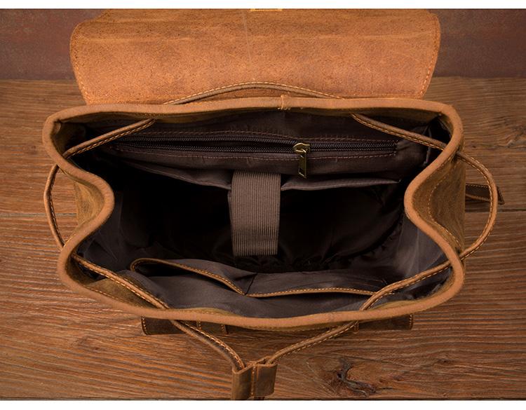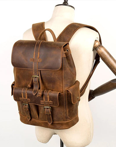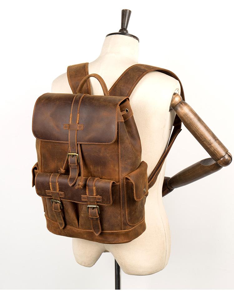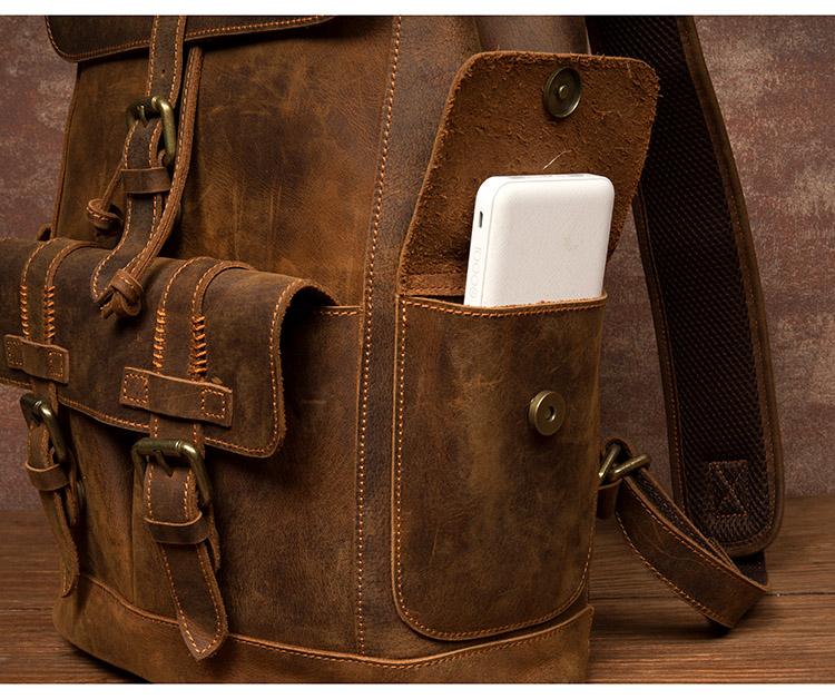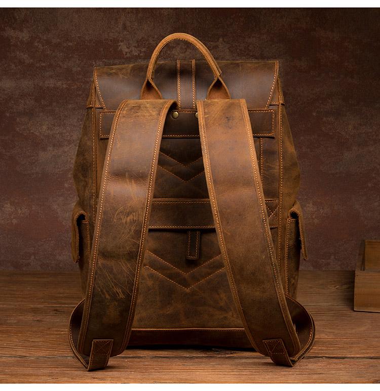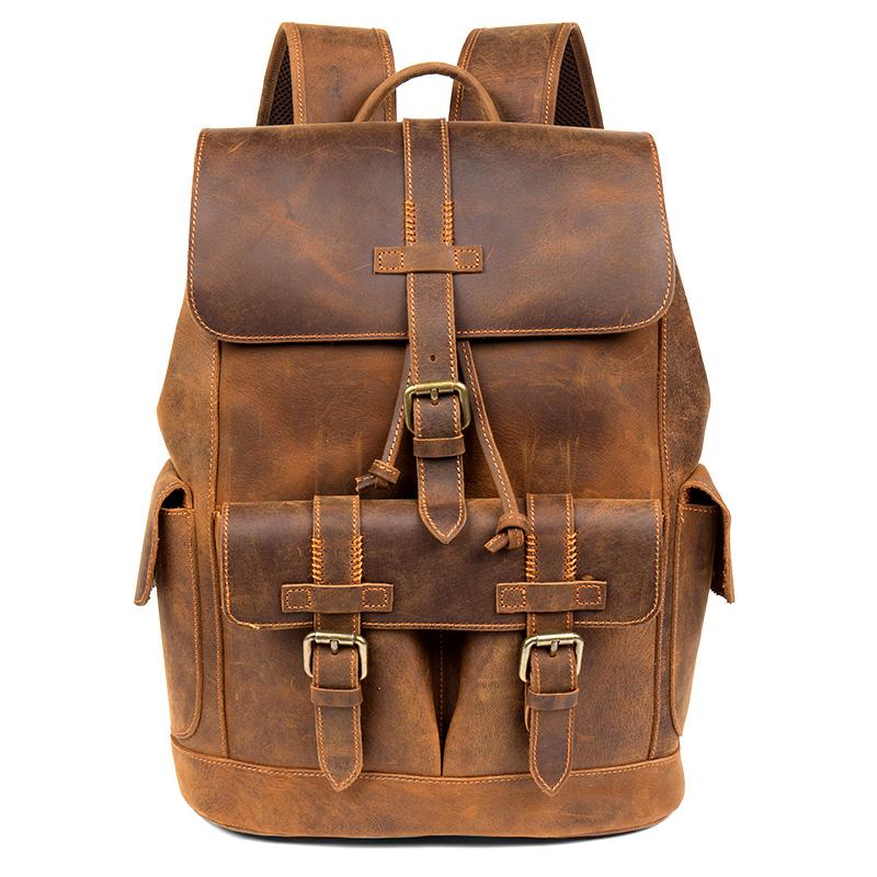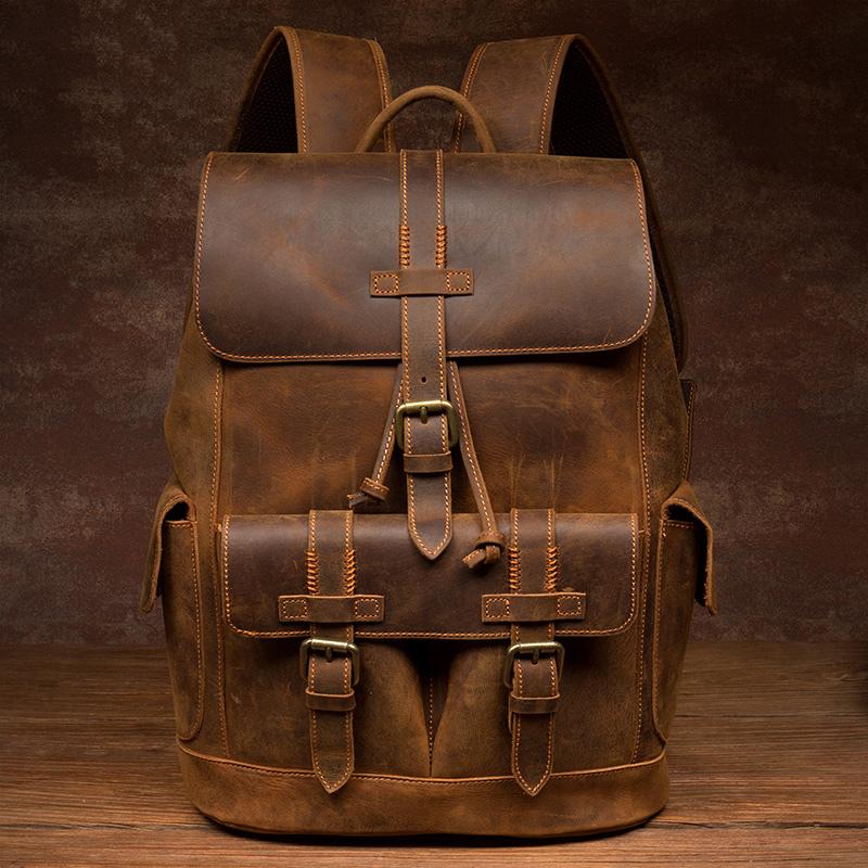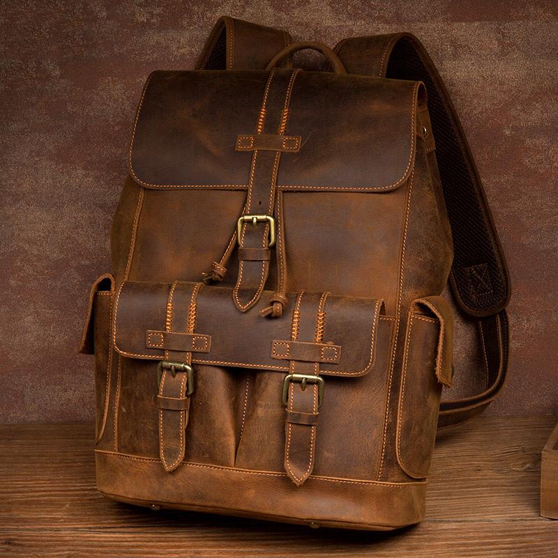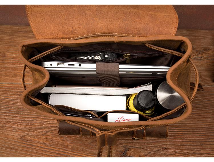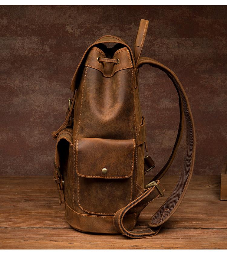 Vintage Brown Fashion Mens Leather 15-inch Computer Backpacks Brown Travel Backpacks School Backpacks for men