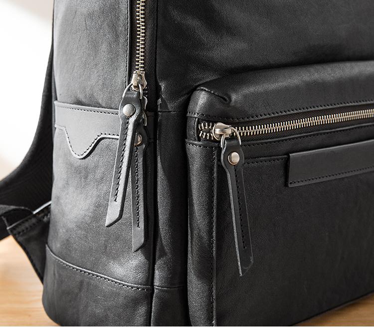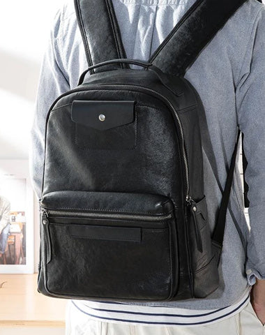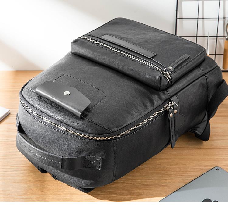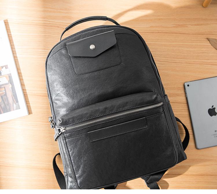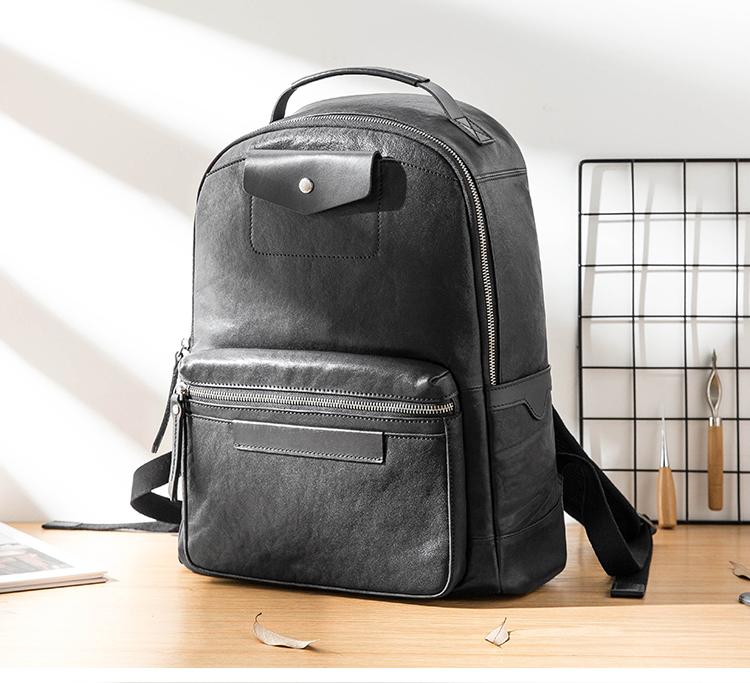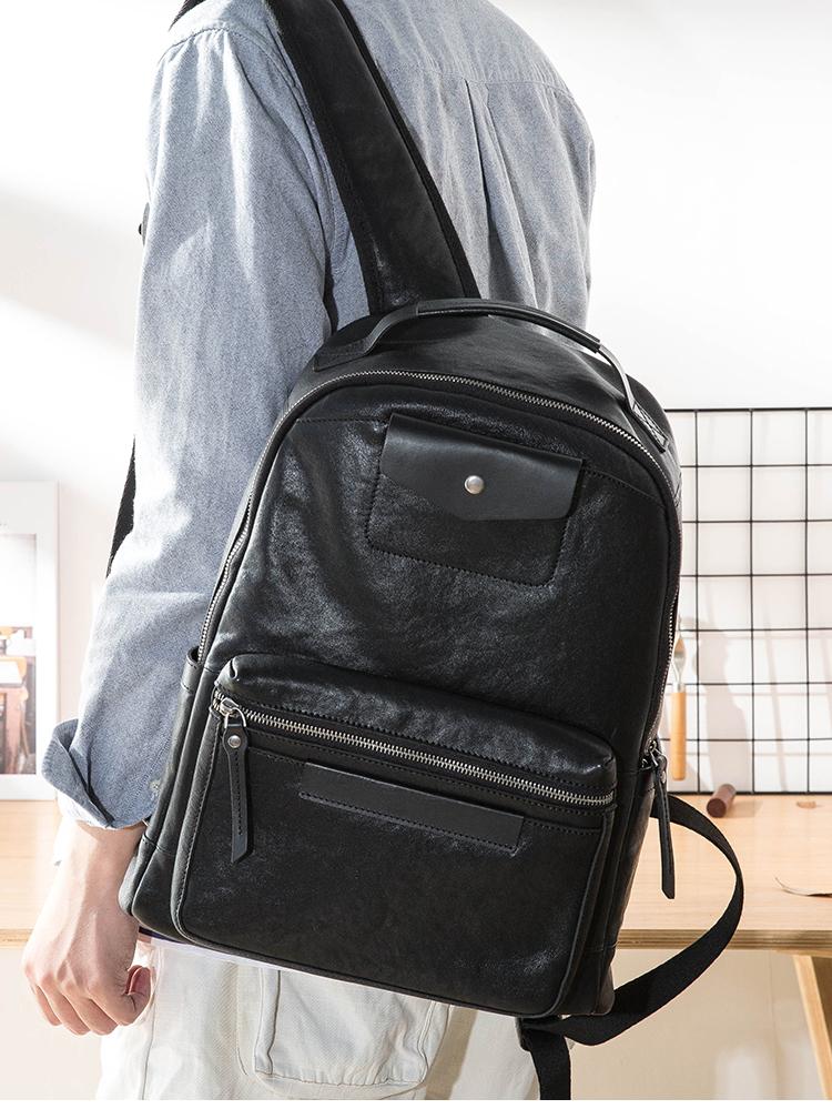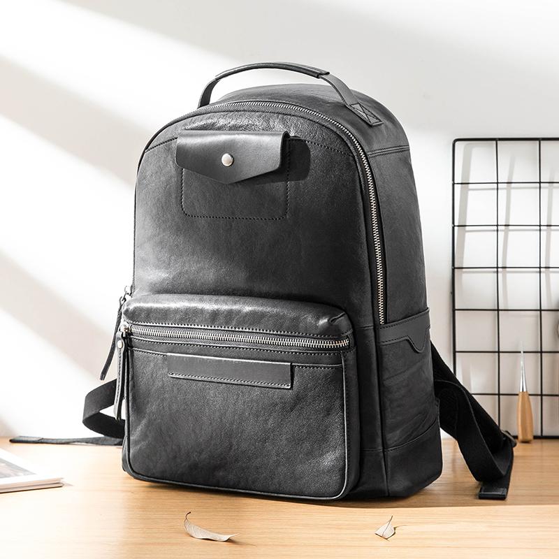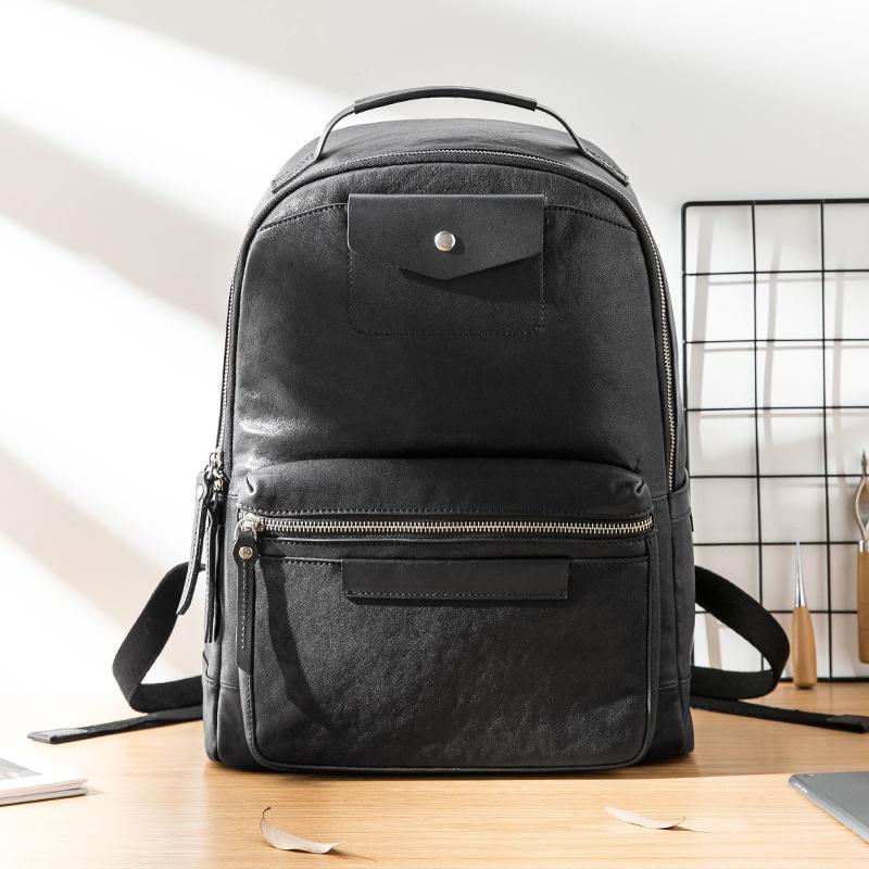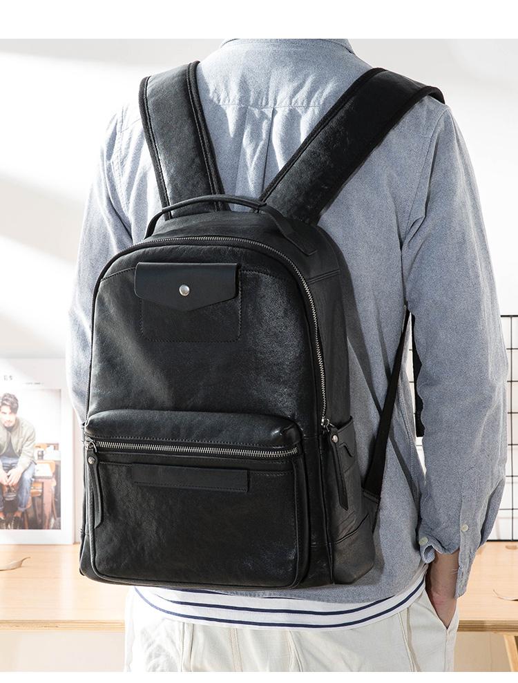 Design: Black Fashion Mens Leather 15-inch Computer Backpacks Travel Backpacks College Backpack for men