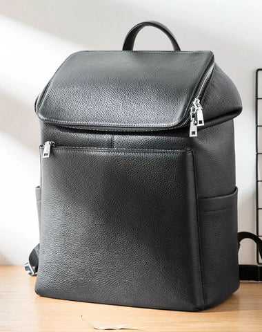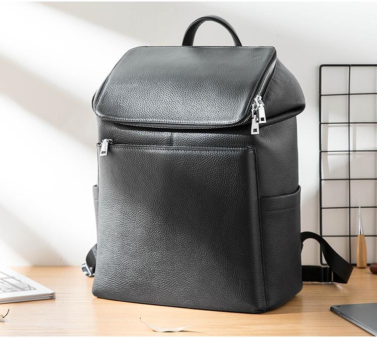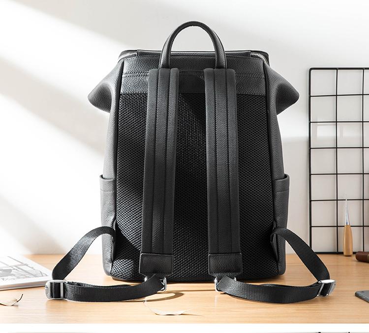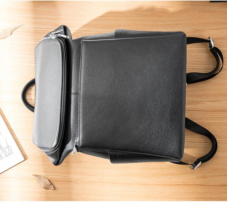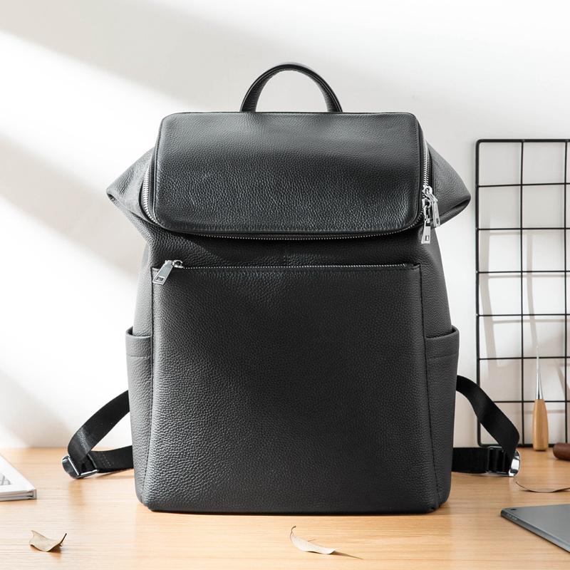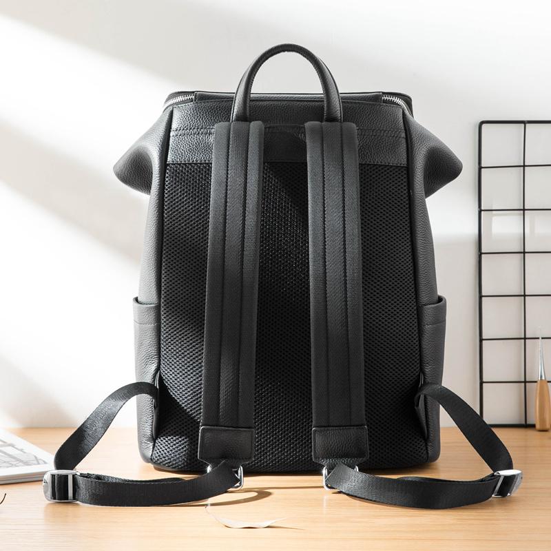Design: Black Fashion Mens Leather 15-inch Multifunction Backpacks Travel Backpacks Laptop Backpack for men