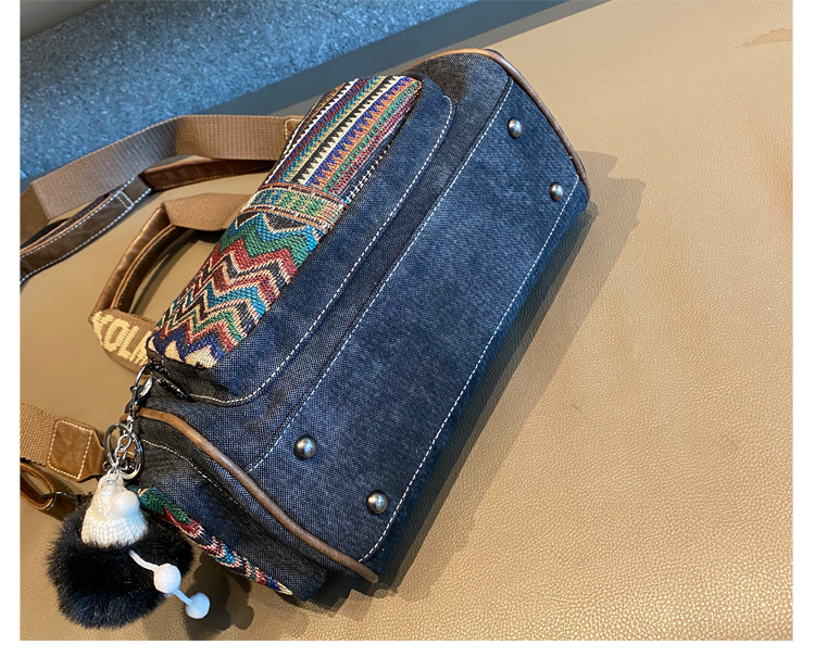 Style: Black Gray Canvas Shoulder Boston Bag Embroidery Canvas Handbag Black Gray Canvas Boston Handbag
