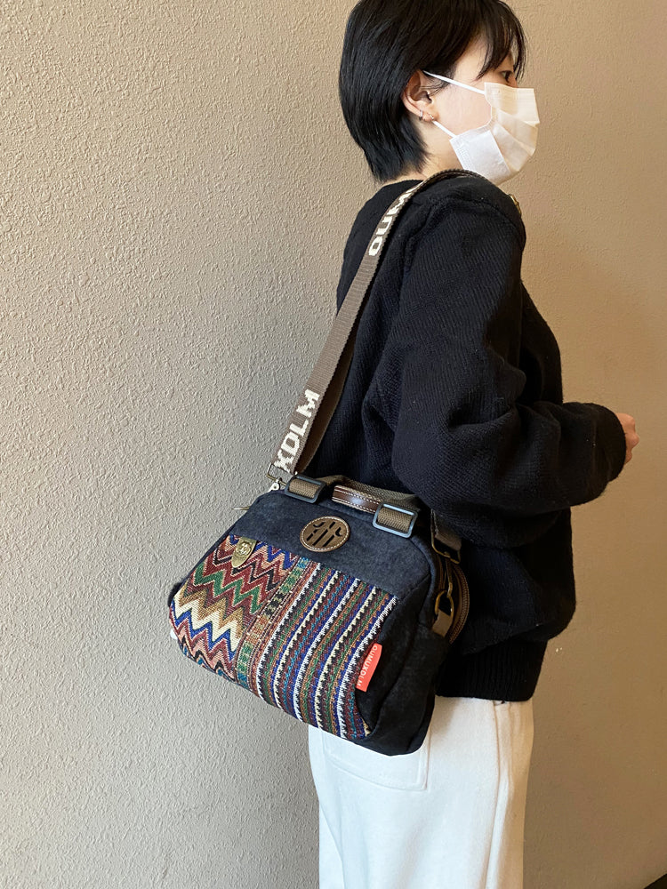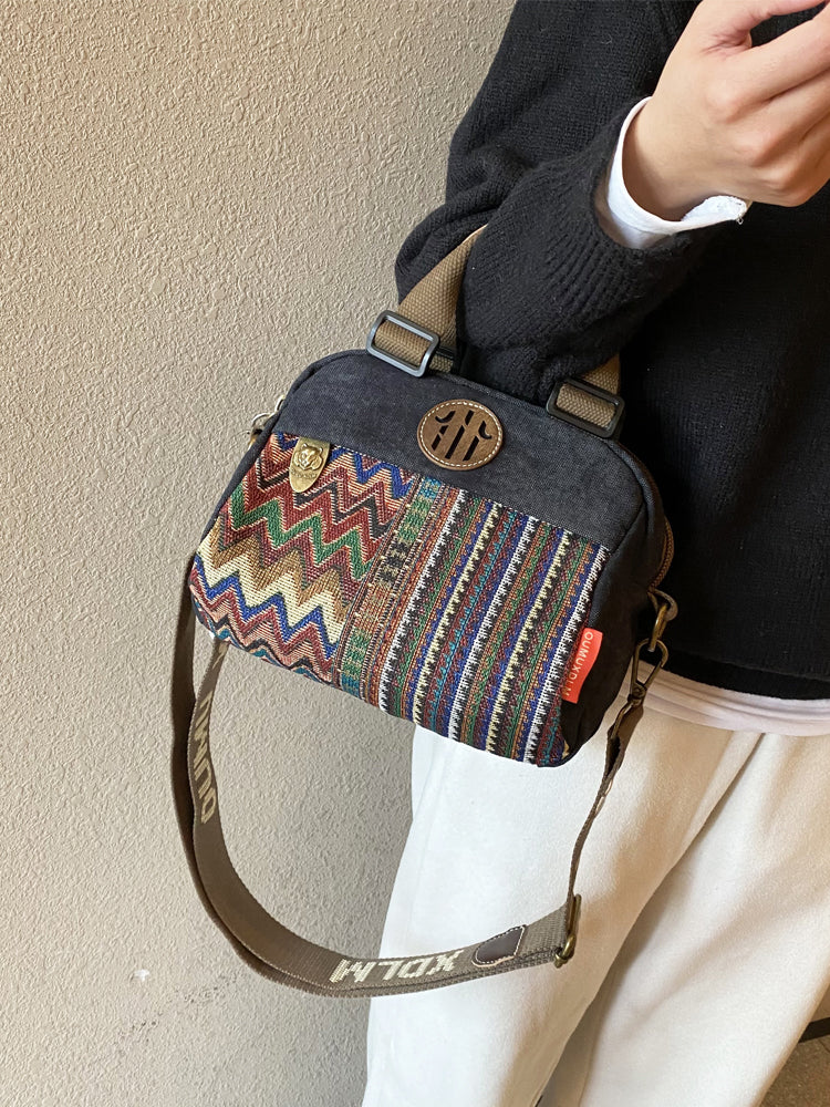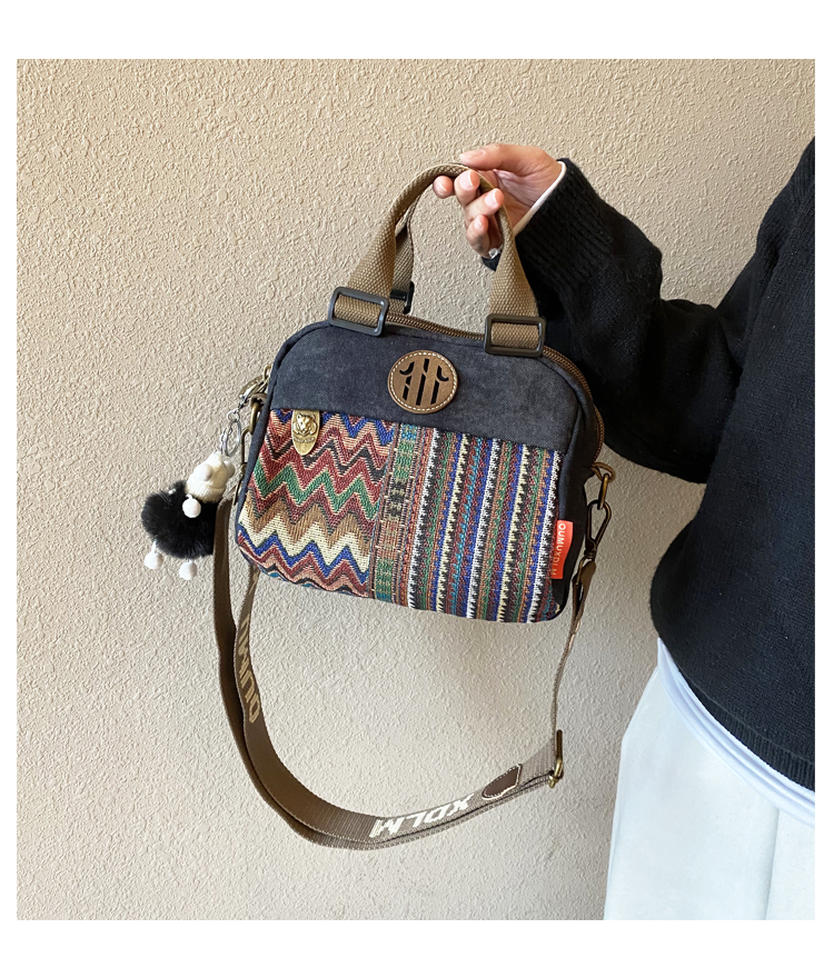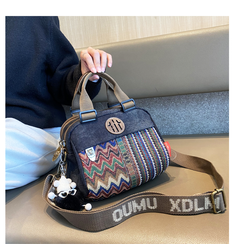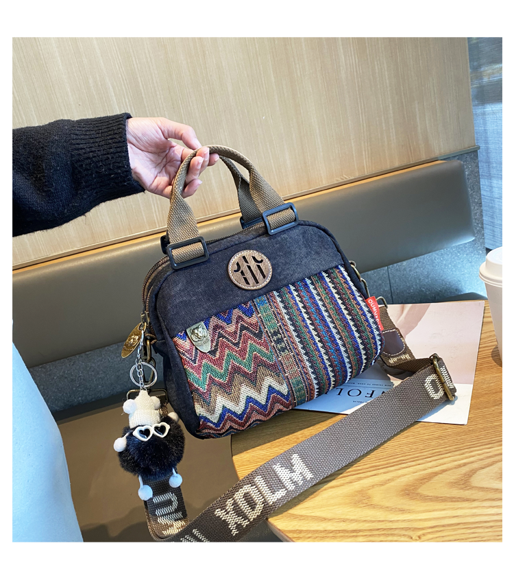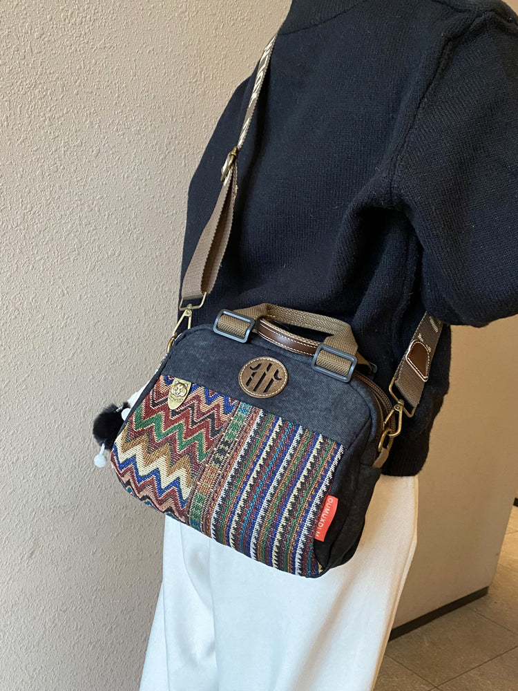 Women Canvas Embroidery Boho Crossbody Bag Handbag Black Gray Canvas Shoulder Bag