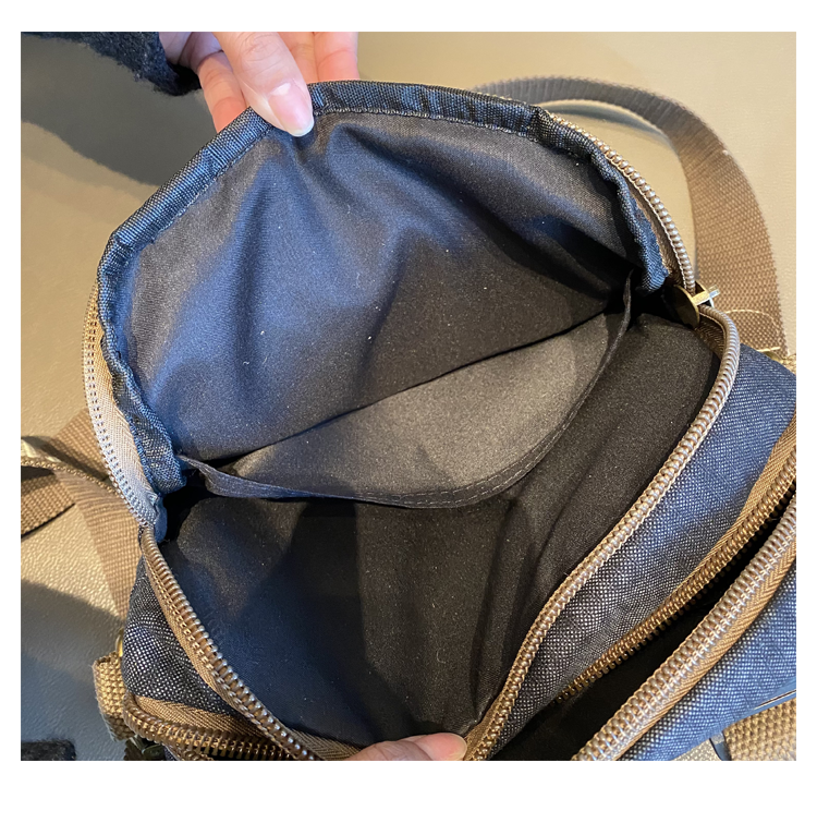 Style: Black Gray Canvas Embroidery Handbag Shoulder Bag Black Gray Canvas Crossbody Bag