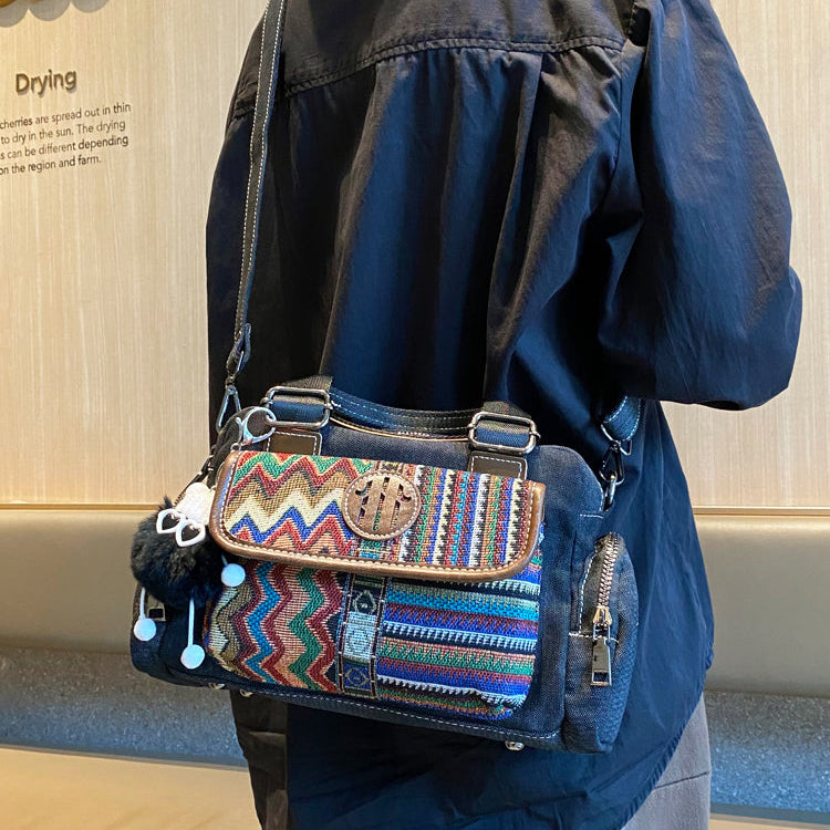 Black Gray Canvas Embroidery Shoulder Bag Women Boho Handbag Black Gray Canvas Crossbody Bag