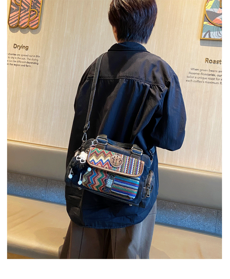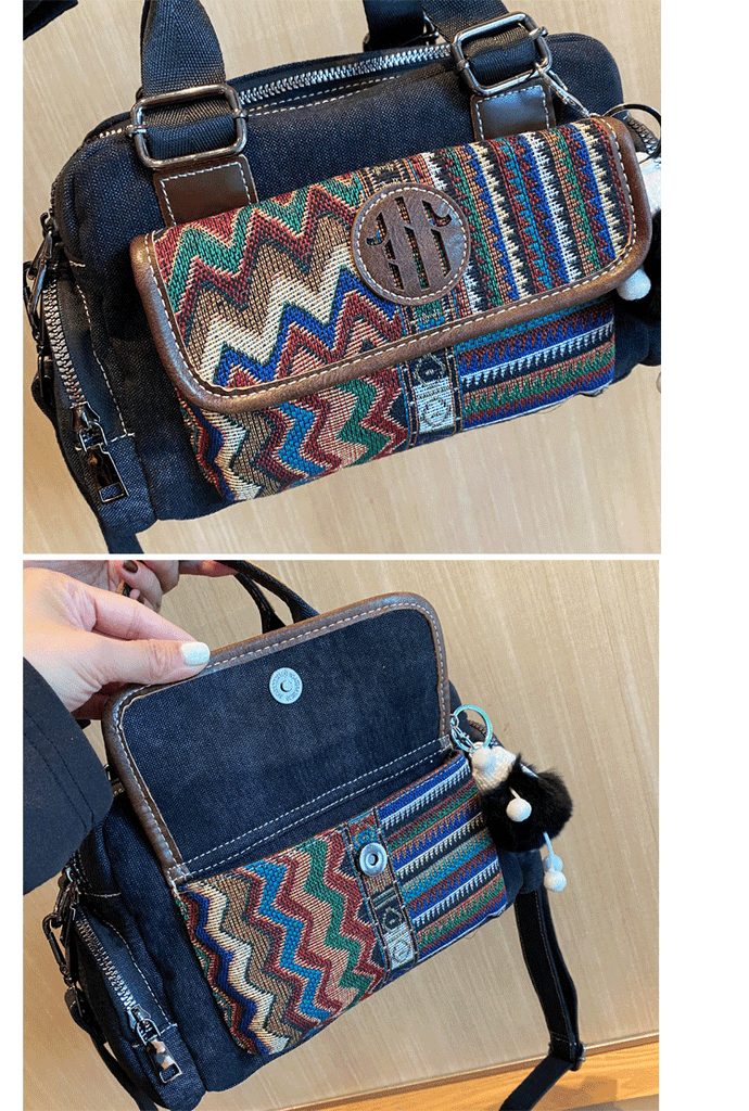 Style: Black Gray Canvas Embroidery Shoulder Bag Boho Handbag Black Gray Canvas Crossbody Bag