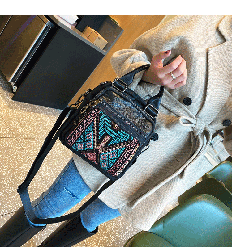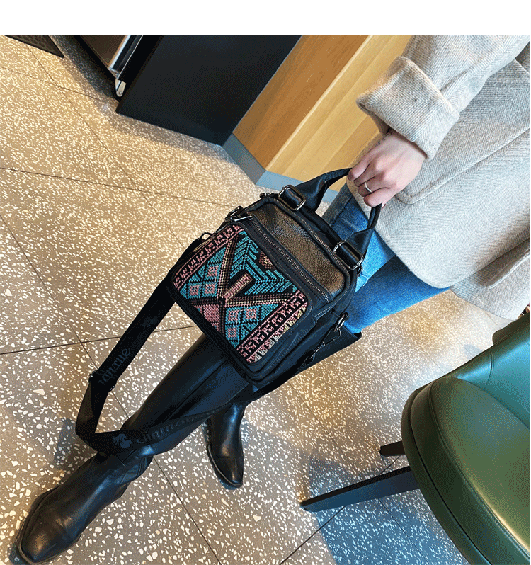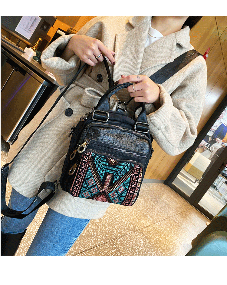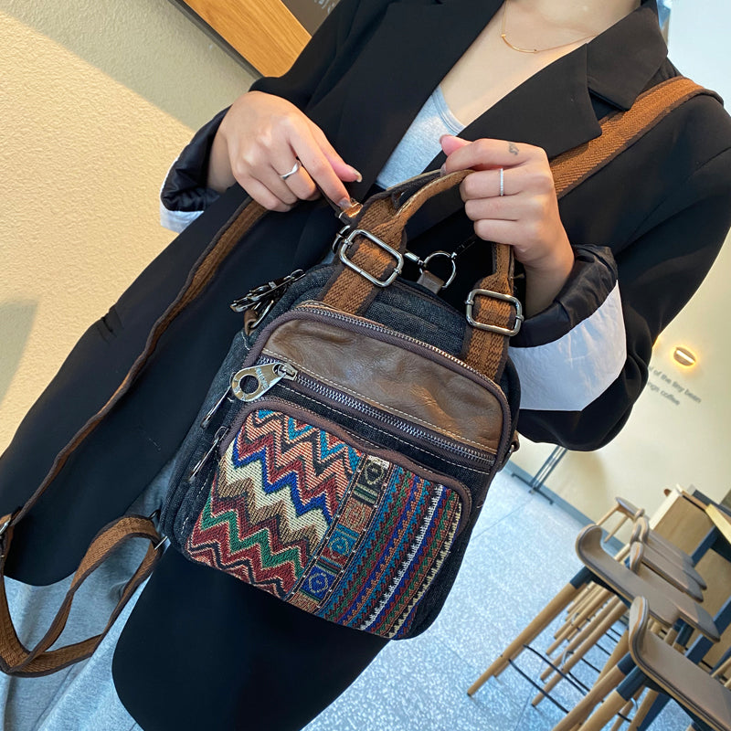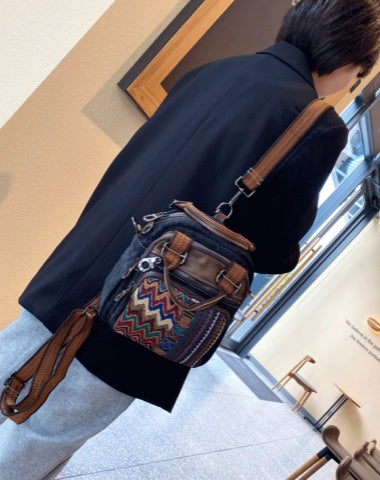 Style: Black Gray Canvas Convertible HandBags Canvas HandBag Black Gray Canvas Convertible Backpack Shoulder Bag Embroidery Canvas Bag