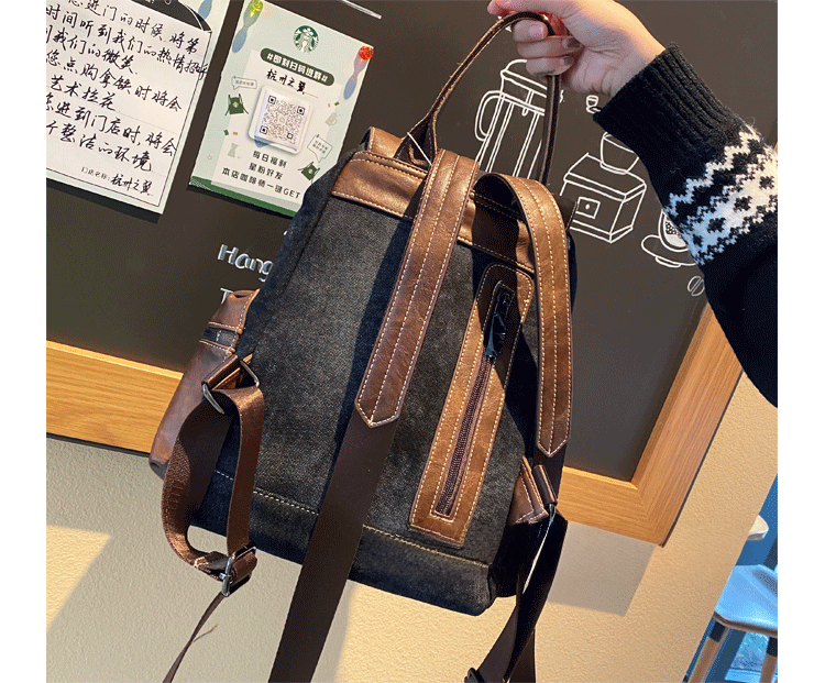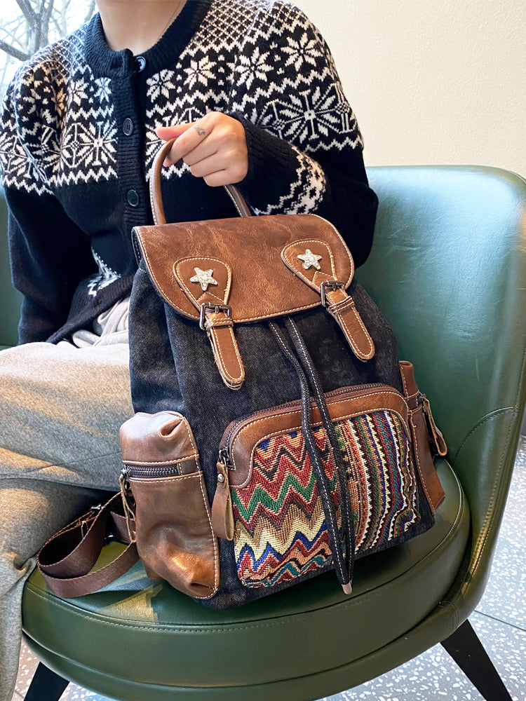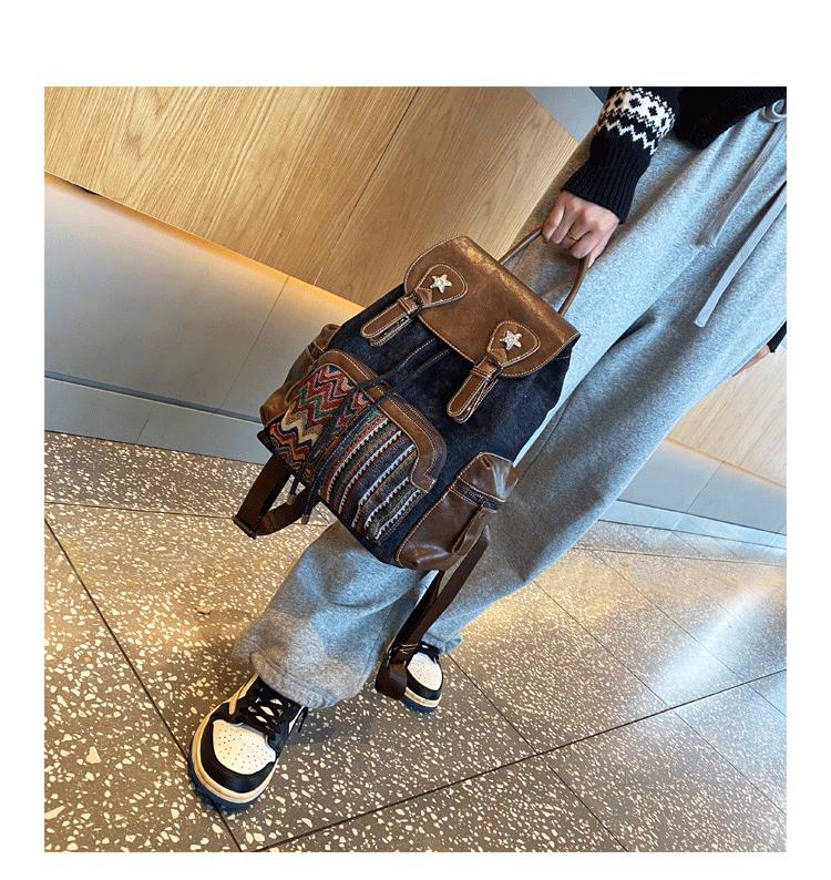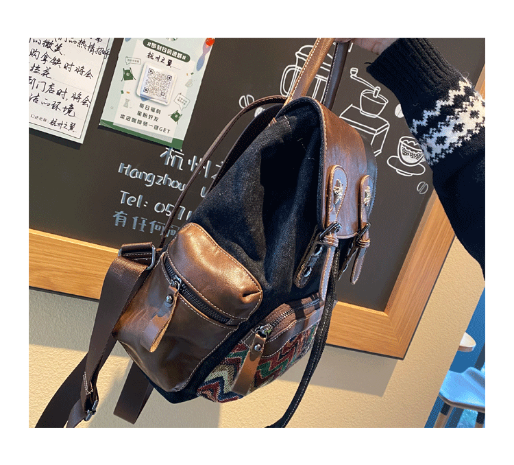 Style: Black Gray Embroidery Canvas Backpack Boho Backpack Womens Vintage Boho Style Backpack