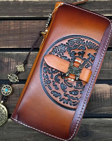 Design: Black Handmade Leather Fashion Brown Long Wallet Clutch Wallet For Men