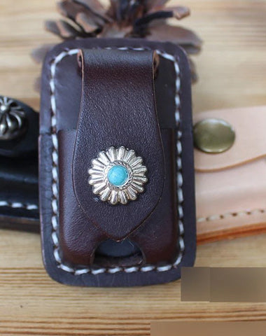 Design: Handmade Mens Black Leather Slim Zippo Lighter Case Slim Zippo Lighter Holder with Belt Clip