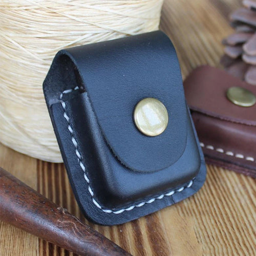 Style: Handmade Black Leather Mens Classic Zippo Lighter Case Zippo Lighter Holder with Belt Clip
