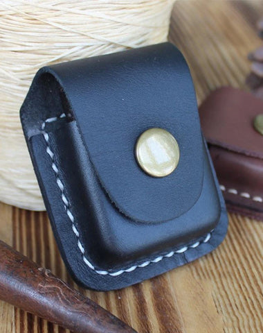 Design: Handmade Black Leather Mens Classic Zippo Lighter Case Zippo Lighter Holder with Belt Clip