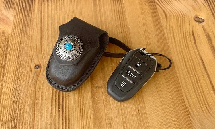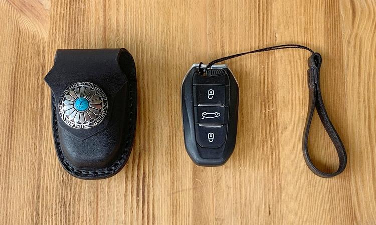 Style: Handmade Black Leather Mens Citroen DS Car Key Case Beige Regal Car Key Holder with Belt Loop/Belt Clip