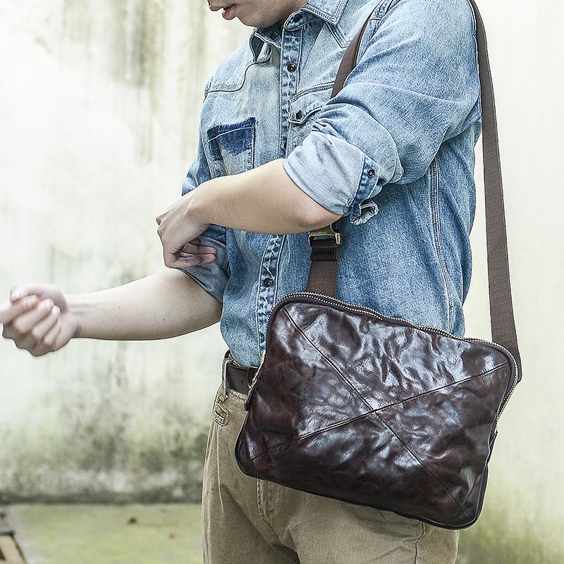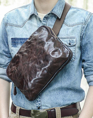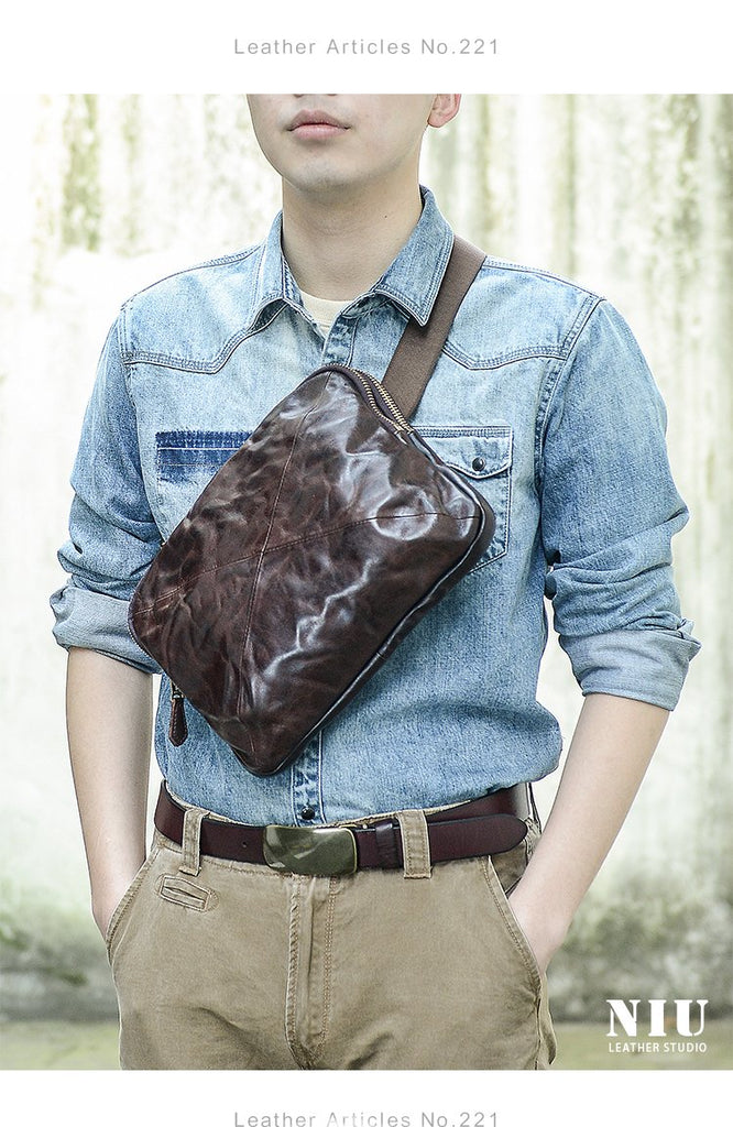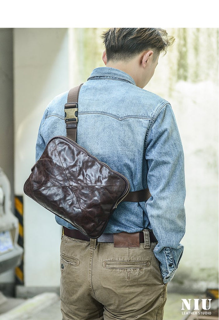 Style: Black Handmade Leather Men 10 inches Chest Bag Messenger Bag One Shoulder Backpack Shoulder Bag For Men
