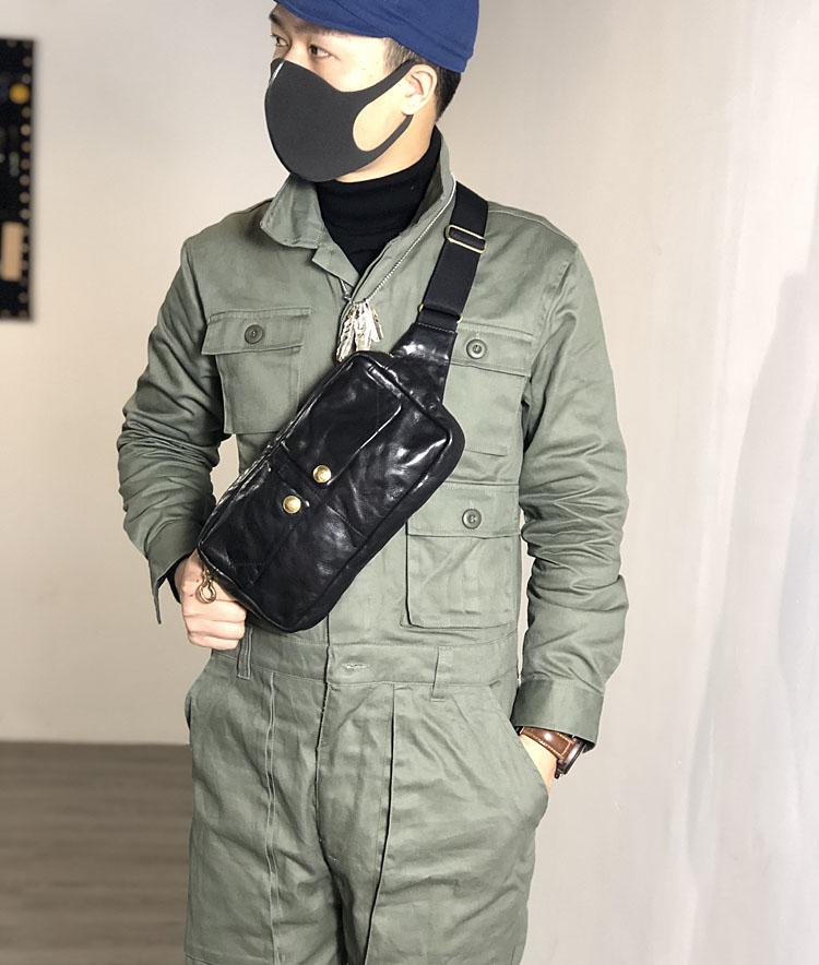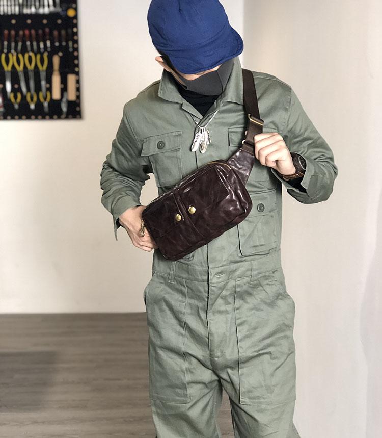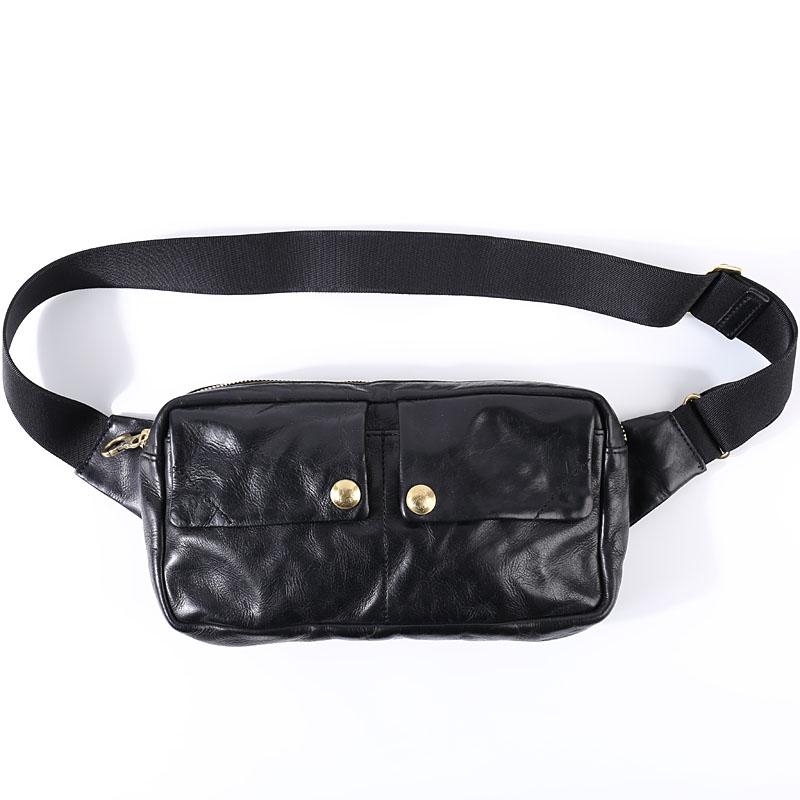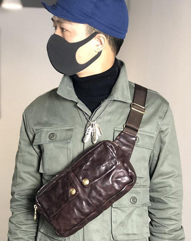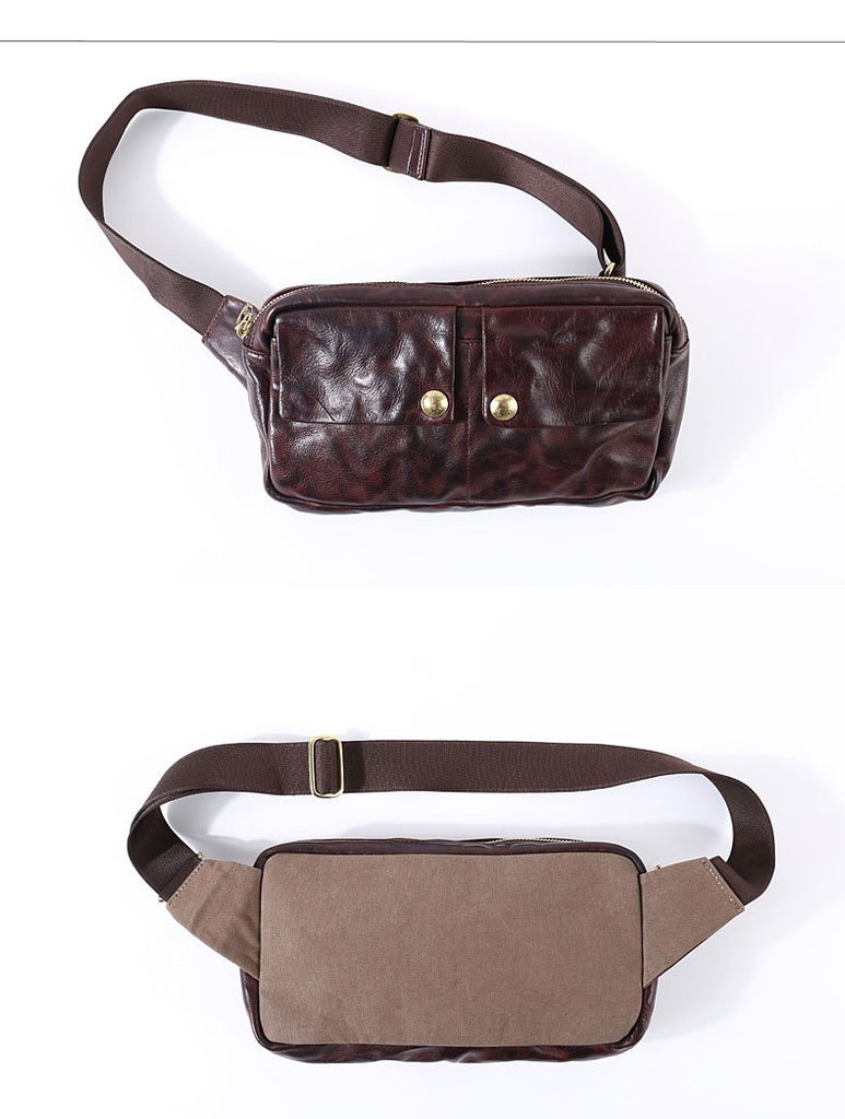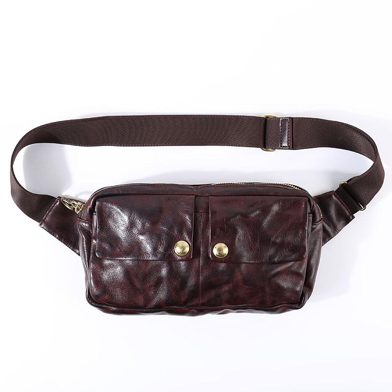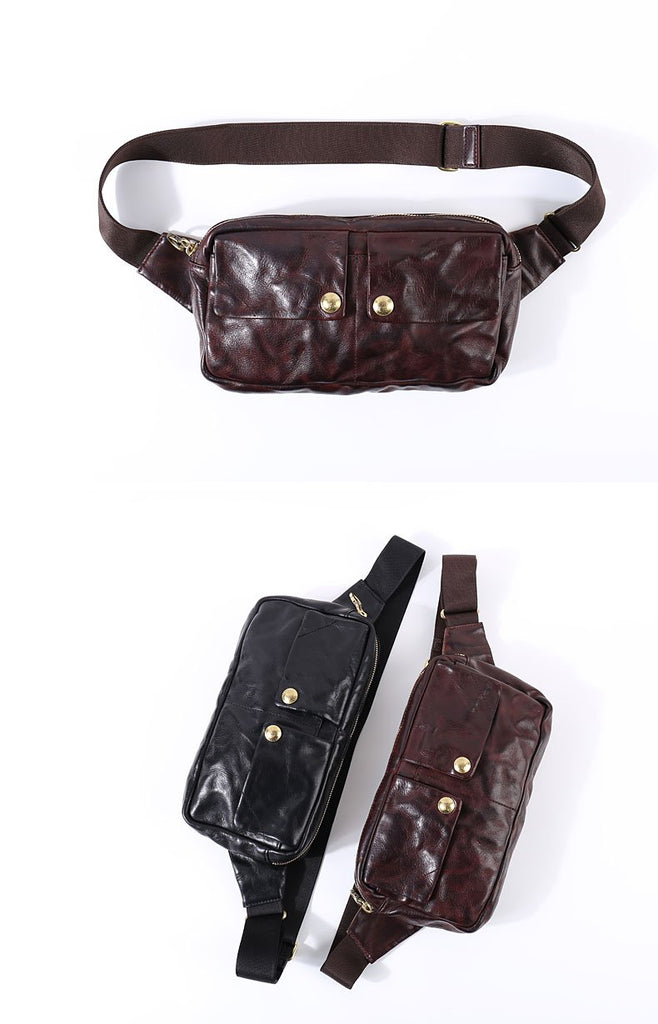 Style: Black Handmade Leather Men Fanny Pack 8 inches Waist Bag Hip Pack Coffee Belt Bag Bumbag for Men