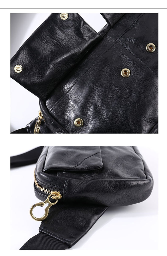 Design: Black Handmade Leather Men Fanny Pack 8 inches Waist Bag Hip Pack Coffee Belt Bag Bumbag for Men