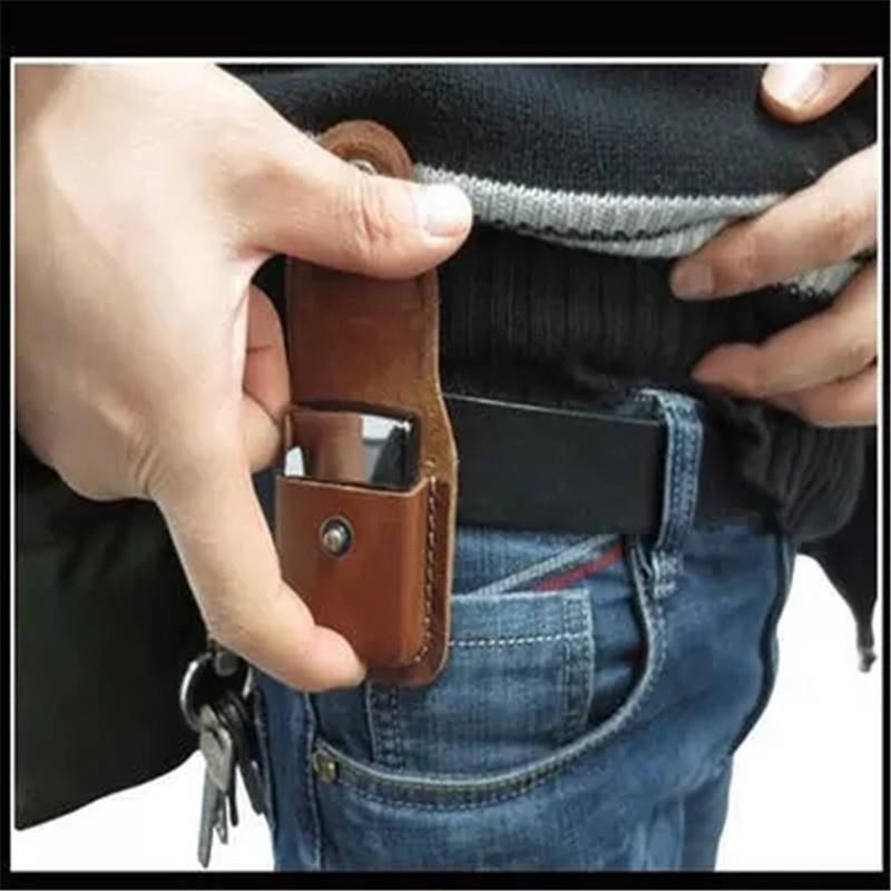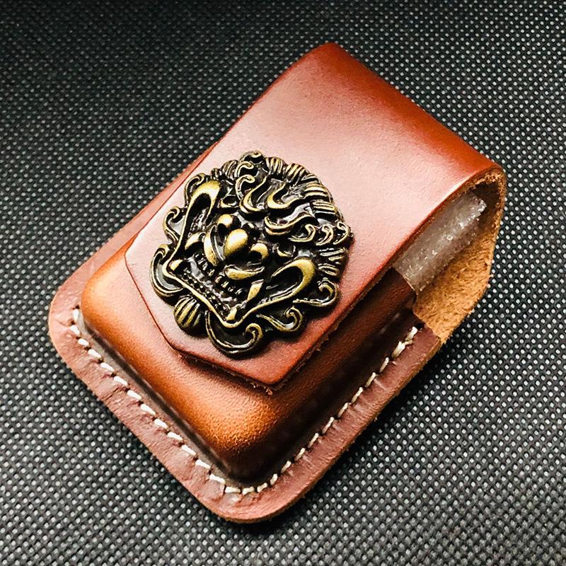 Style: Brown Handmade Leather Mens Black Zippo Lighter Holders Lighter Case For Men