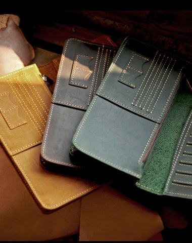Style: Black Handmade Leather Mens Phone Wallet Clutch Bag Wristlet Bag Zipper Long Wallet For Men